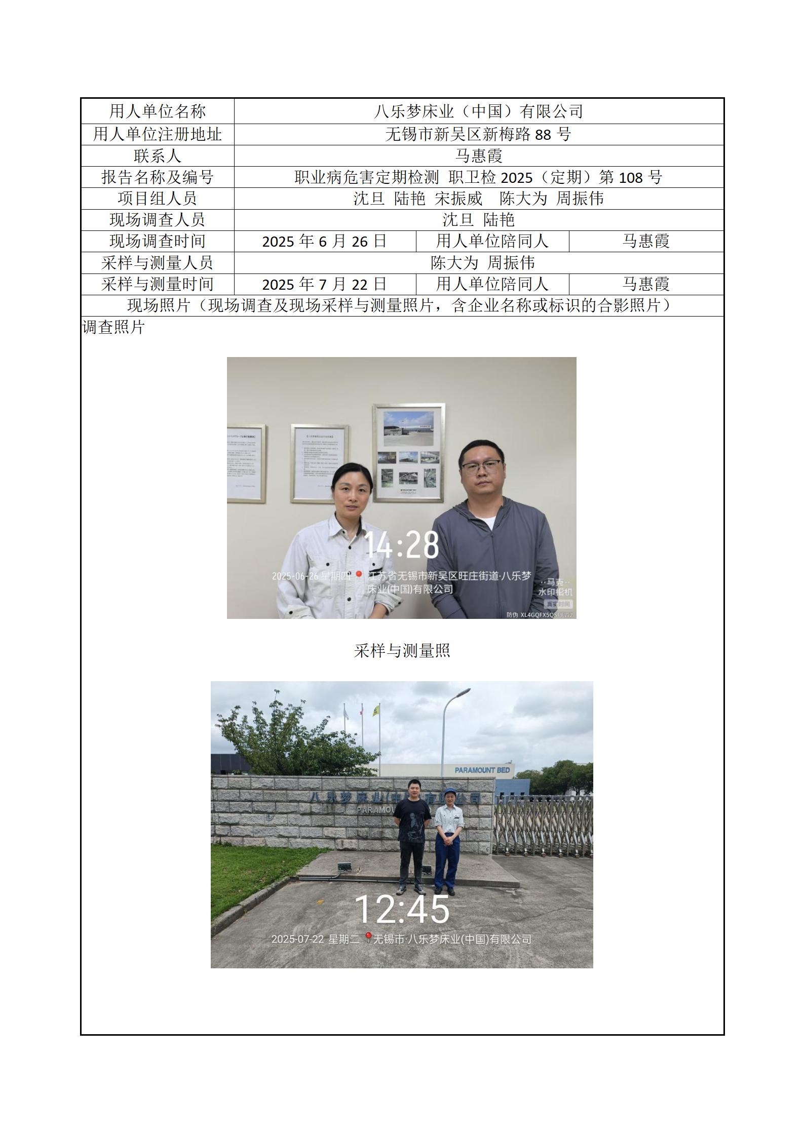 现场采样每日上报(八乐梦床业(中国)有限公司)