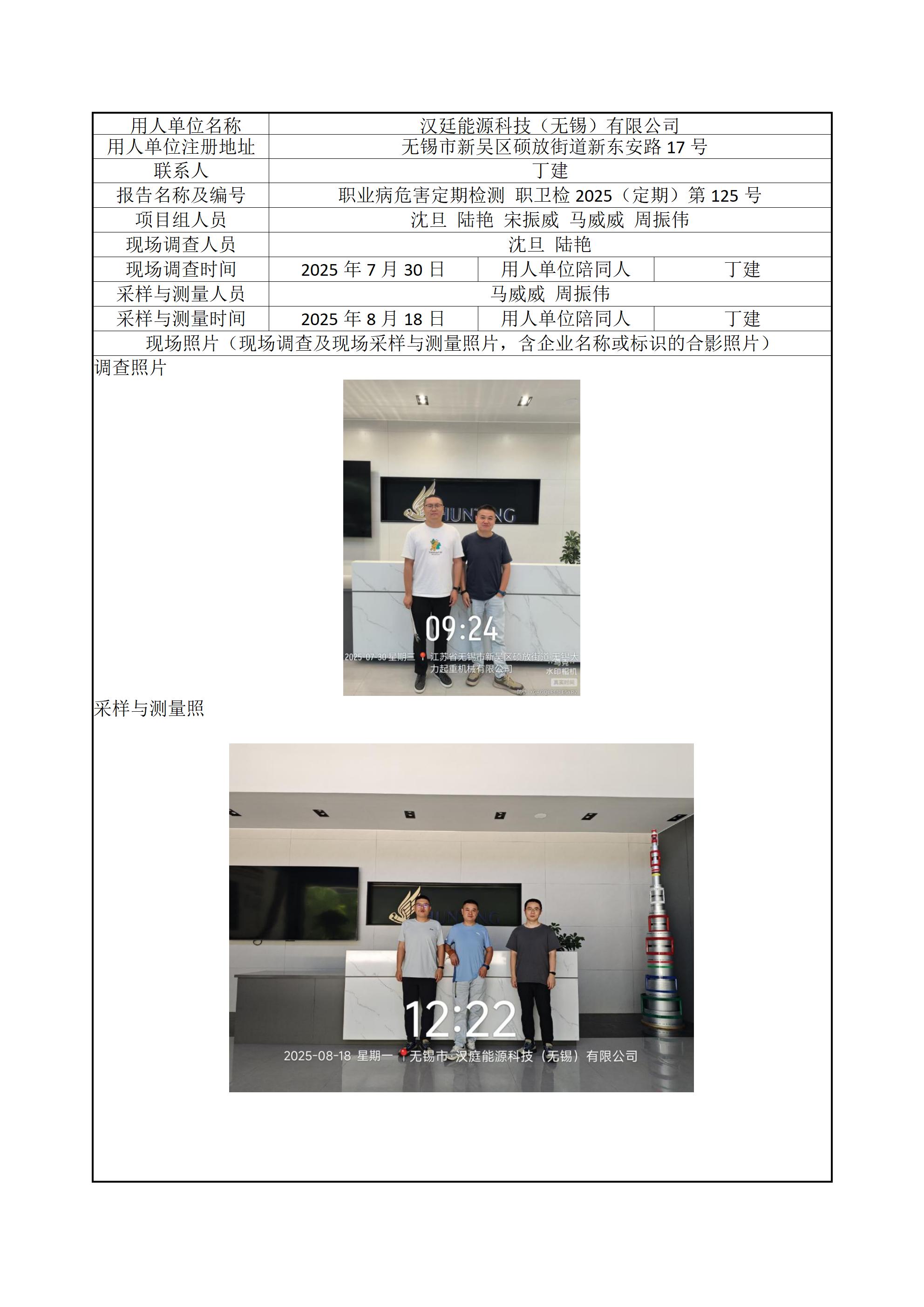 现场采样每日上报(汉廷能源科技(无锡)有限公司)