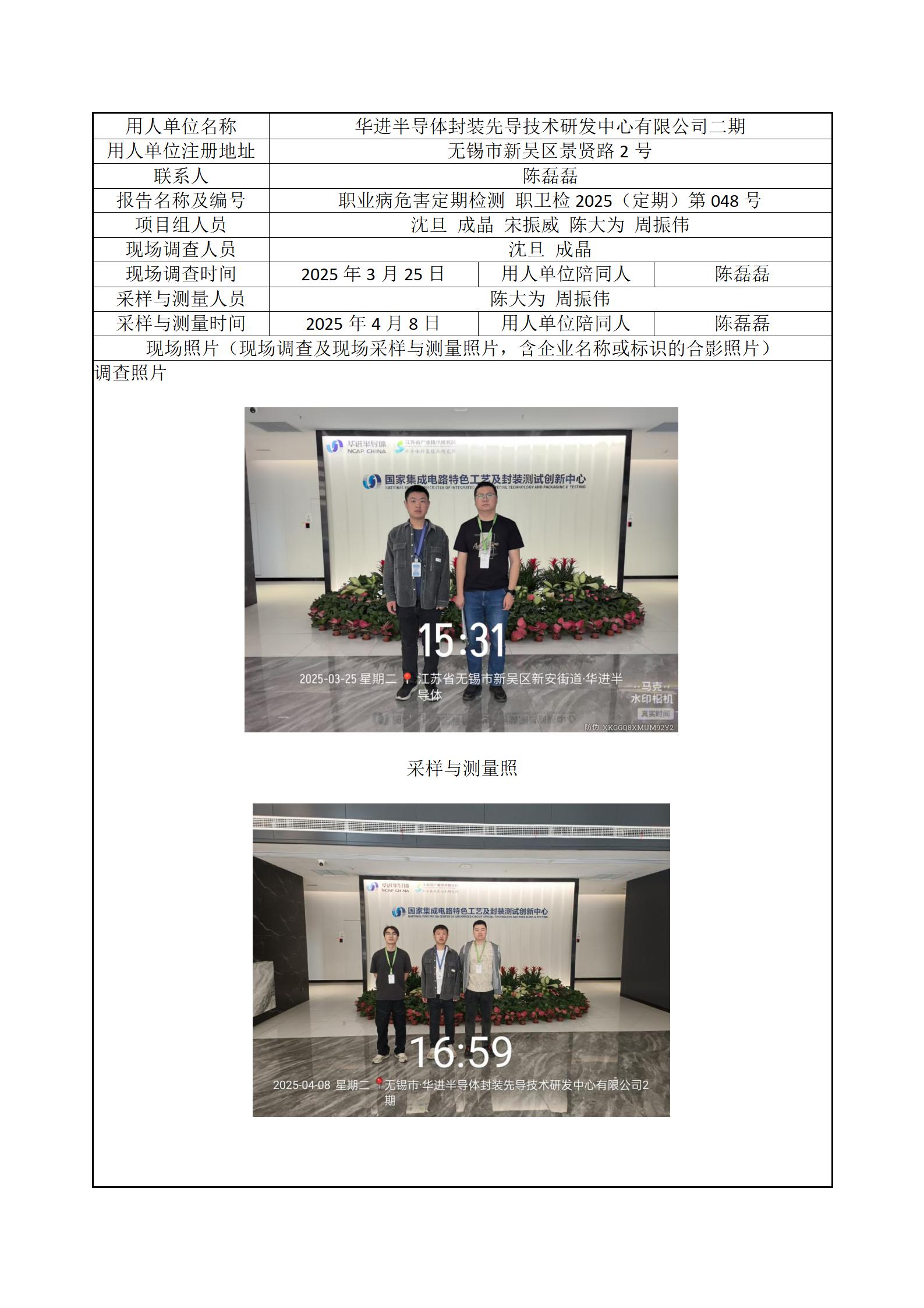 现场采样每日上报(华进半导体封装先导技术研发中心有限公司二期)