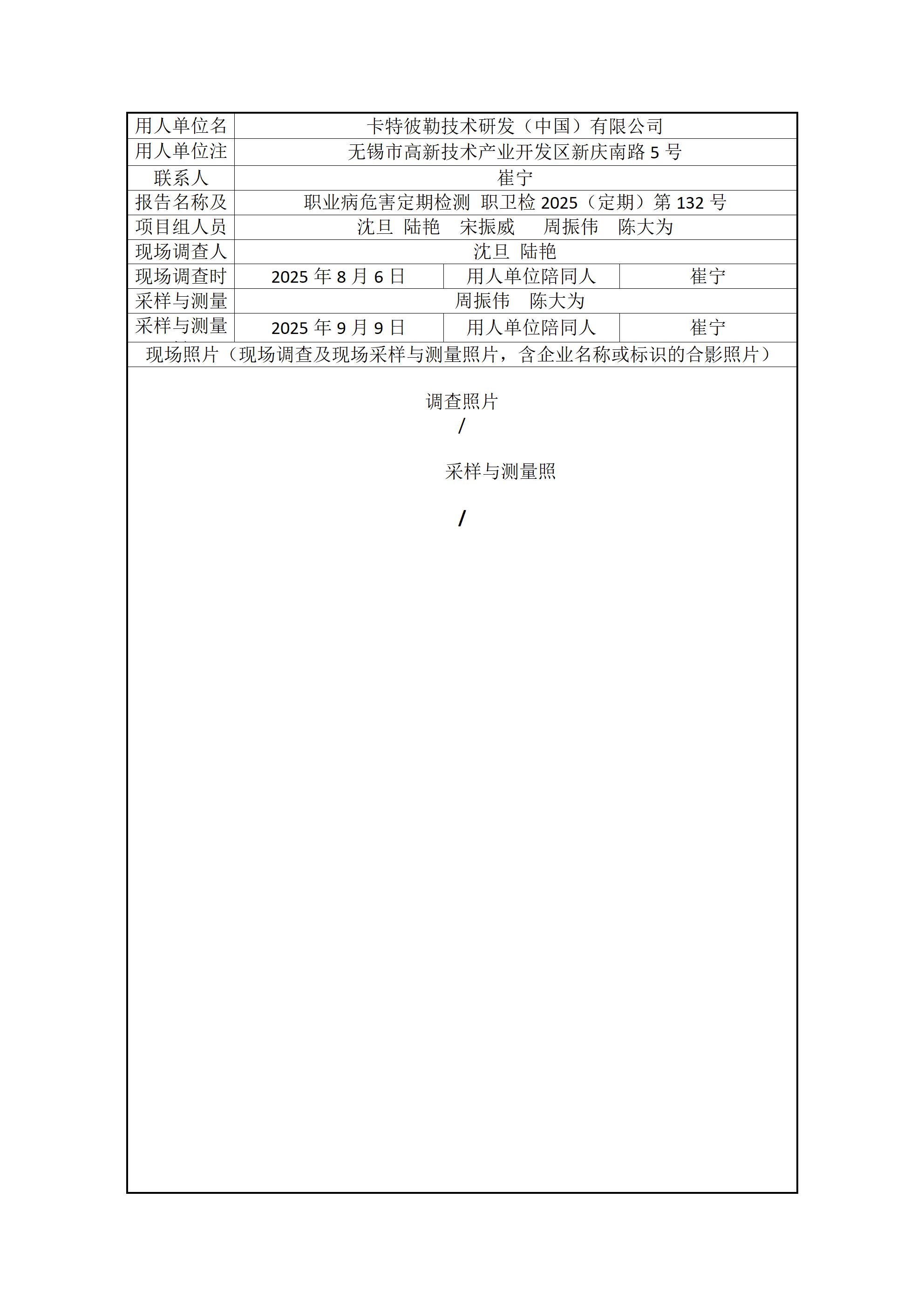 现场采样每日上报(卡特彼勒技术研发(中国)有限公司)