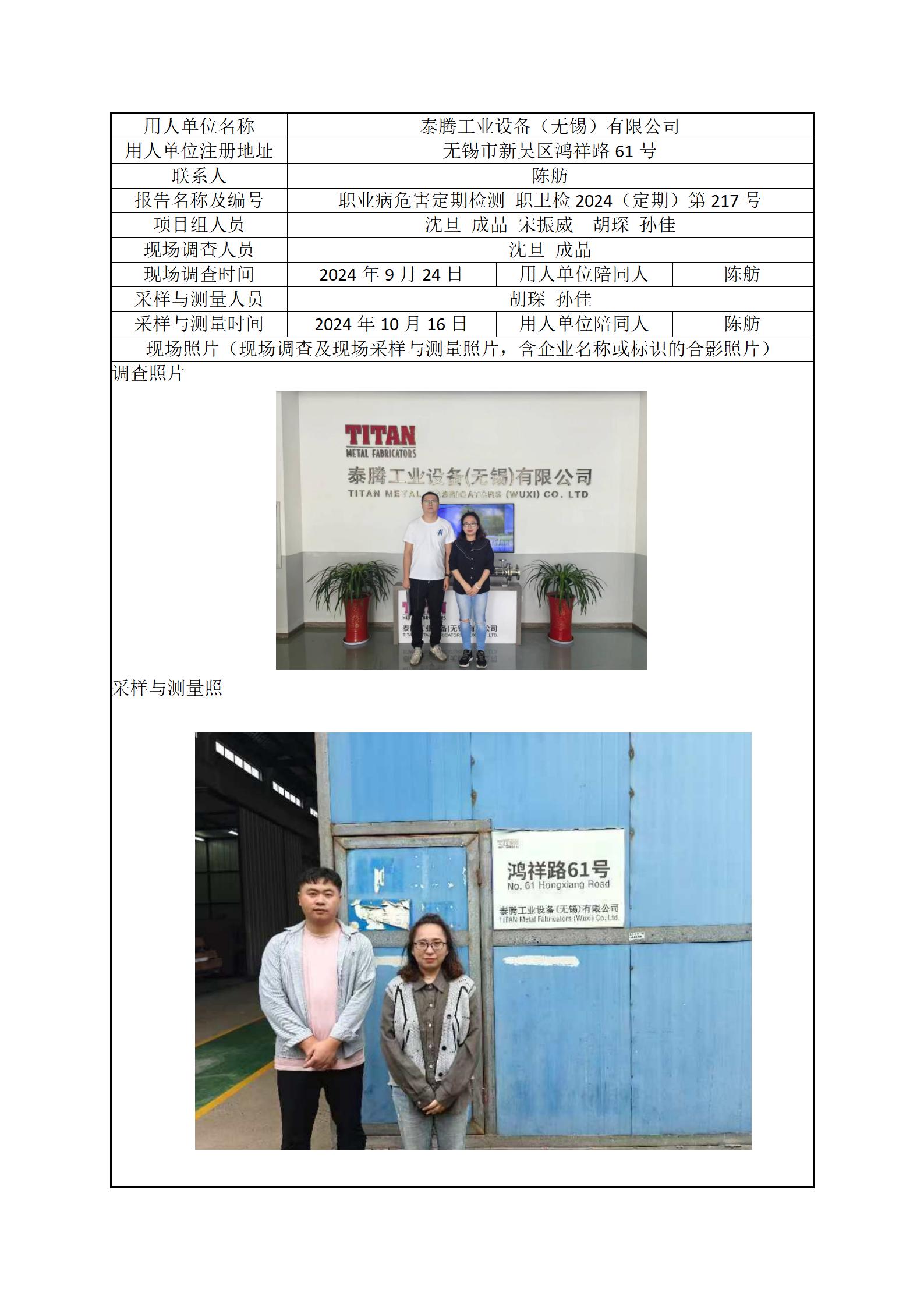现场采样每日上报(泰腾工业设备(无锡)有限公司)