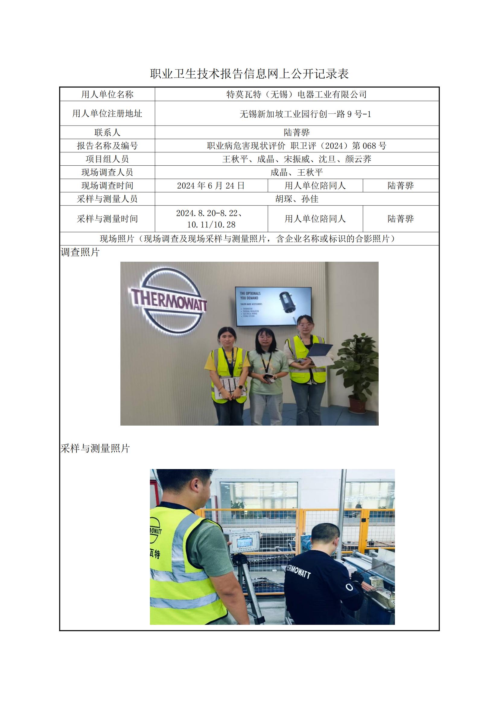 现场采样每日上报(特莫瓦特(无锡)电器工业有限公司)