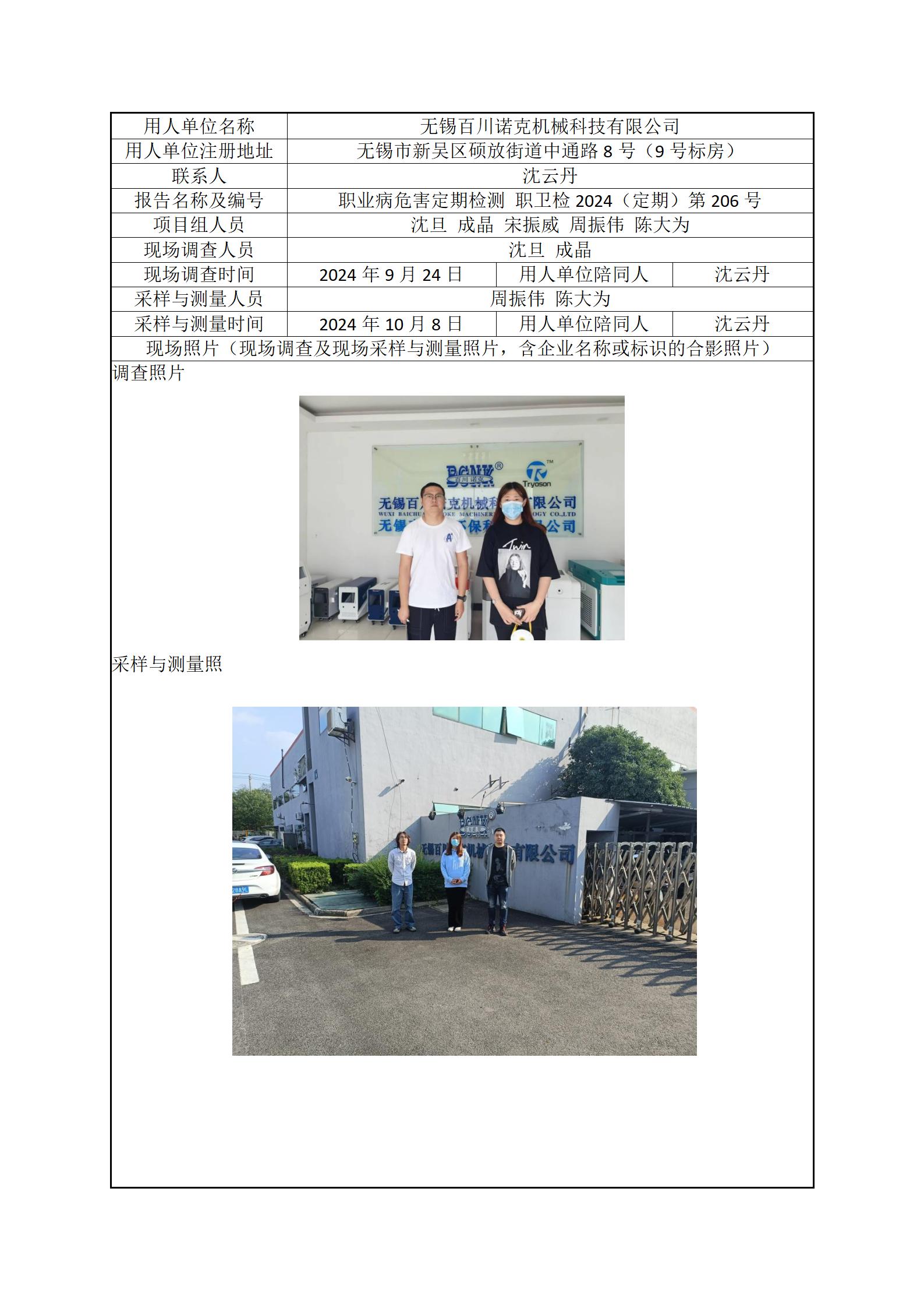 现场采样每日上报(无锡百川诺克机械科技有限公司)