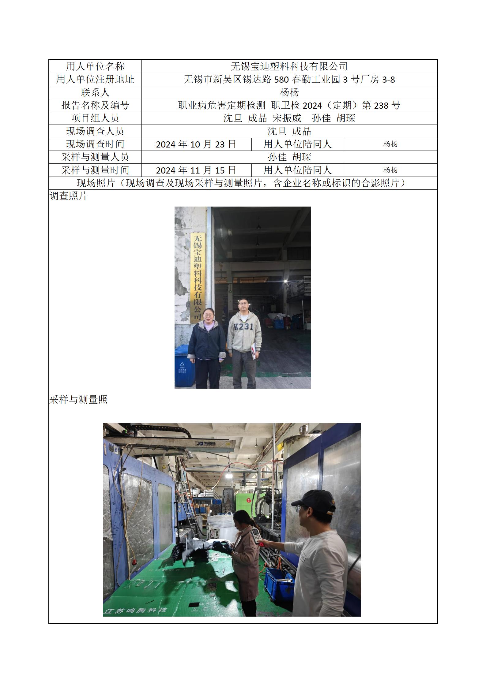 现场采样每日上报(无锡宝迪塑料科技有限公司)
