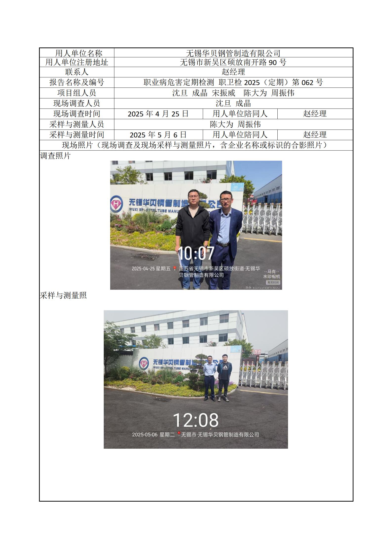 现场采样每日上报(无锡华贝钢管制造有限公司)