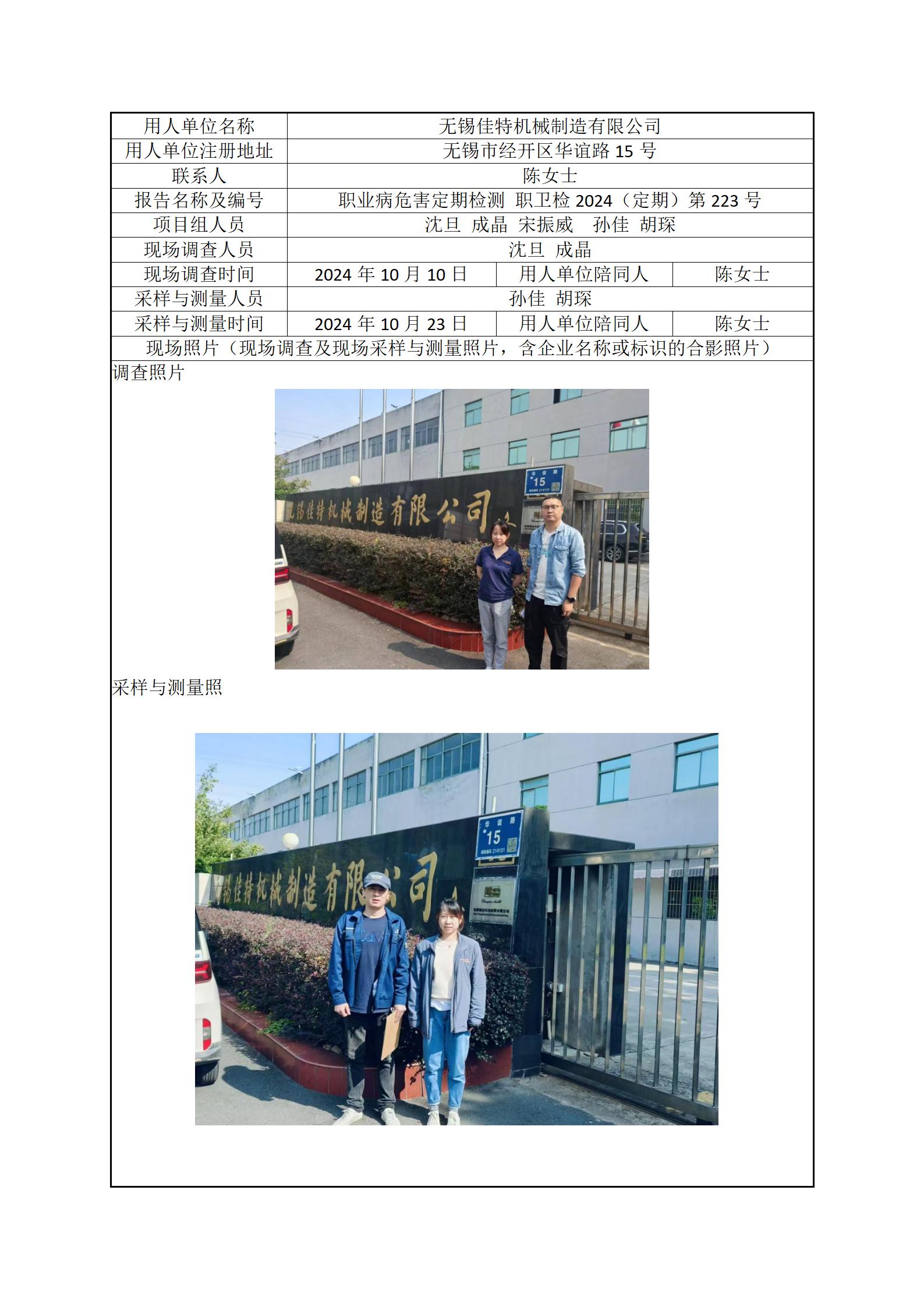 现场采样每日上报(无锡佳特机械制造有限公司)