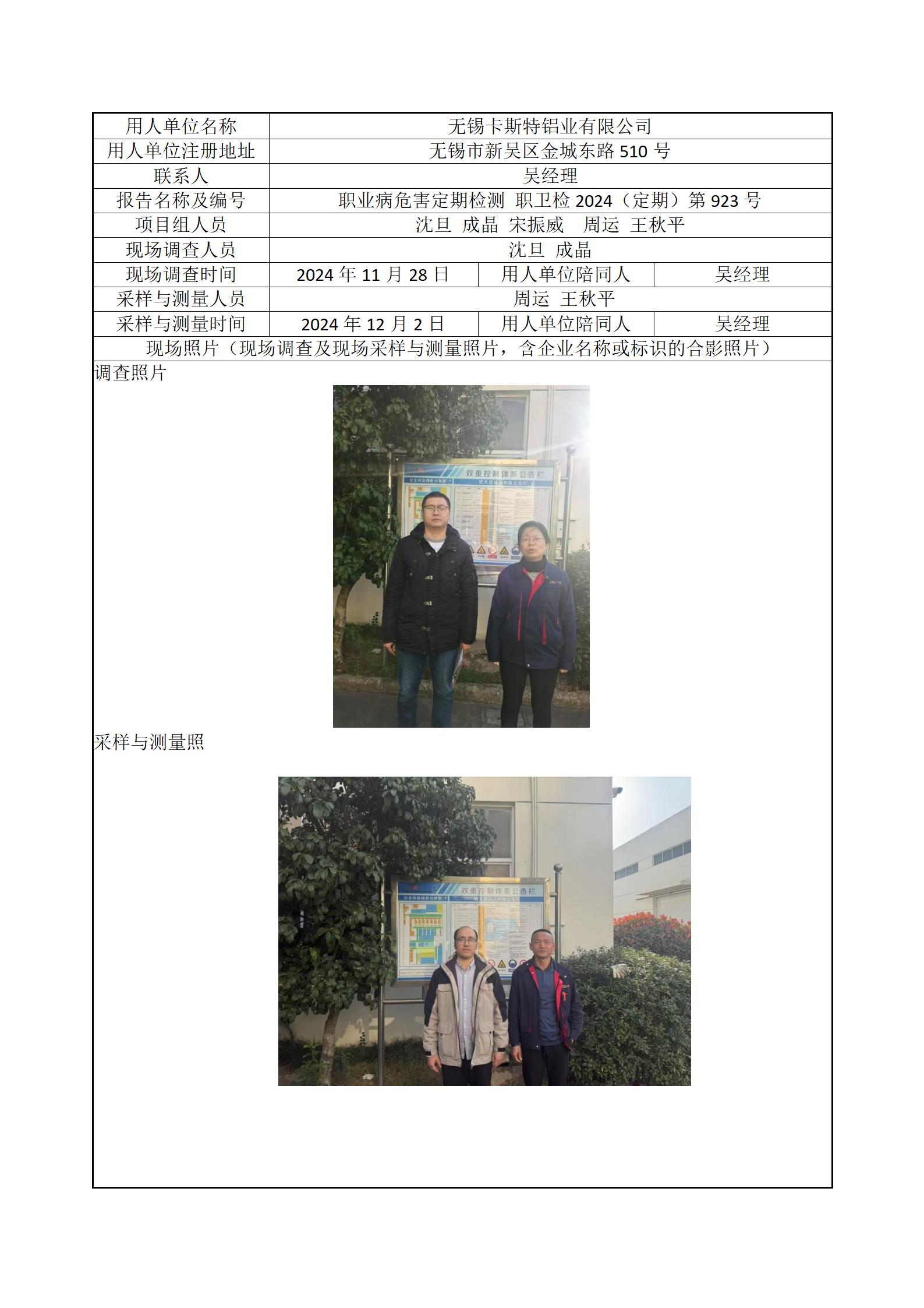 现场采样每日上报(无锡卡斯特铝业有限公司)