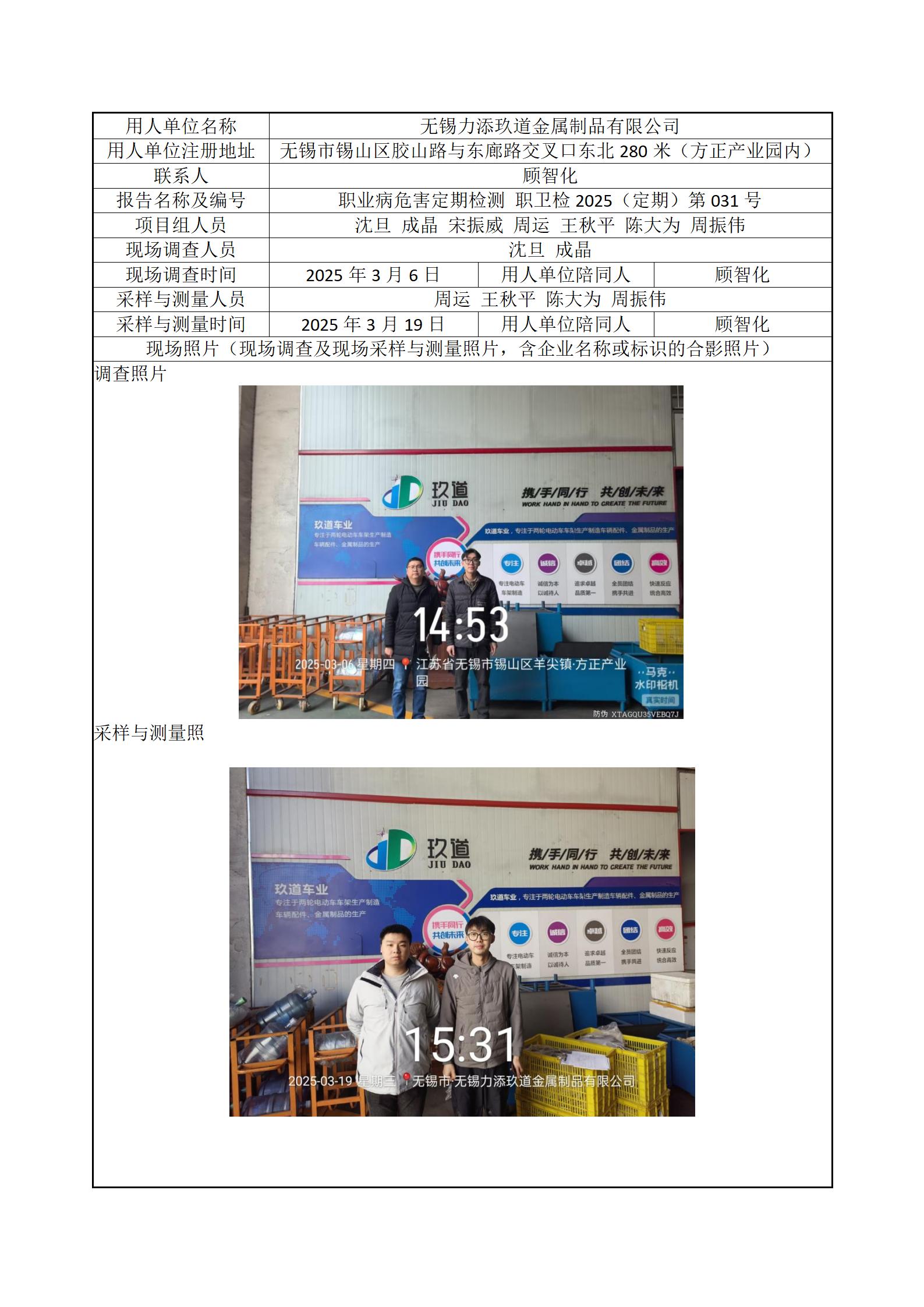 现场采样每日上报(无锡力添玖道金属制品有限公司)