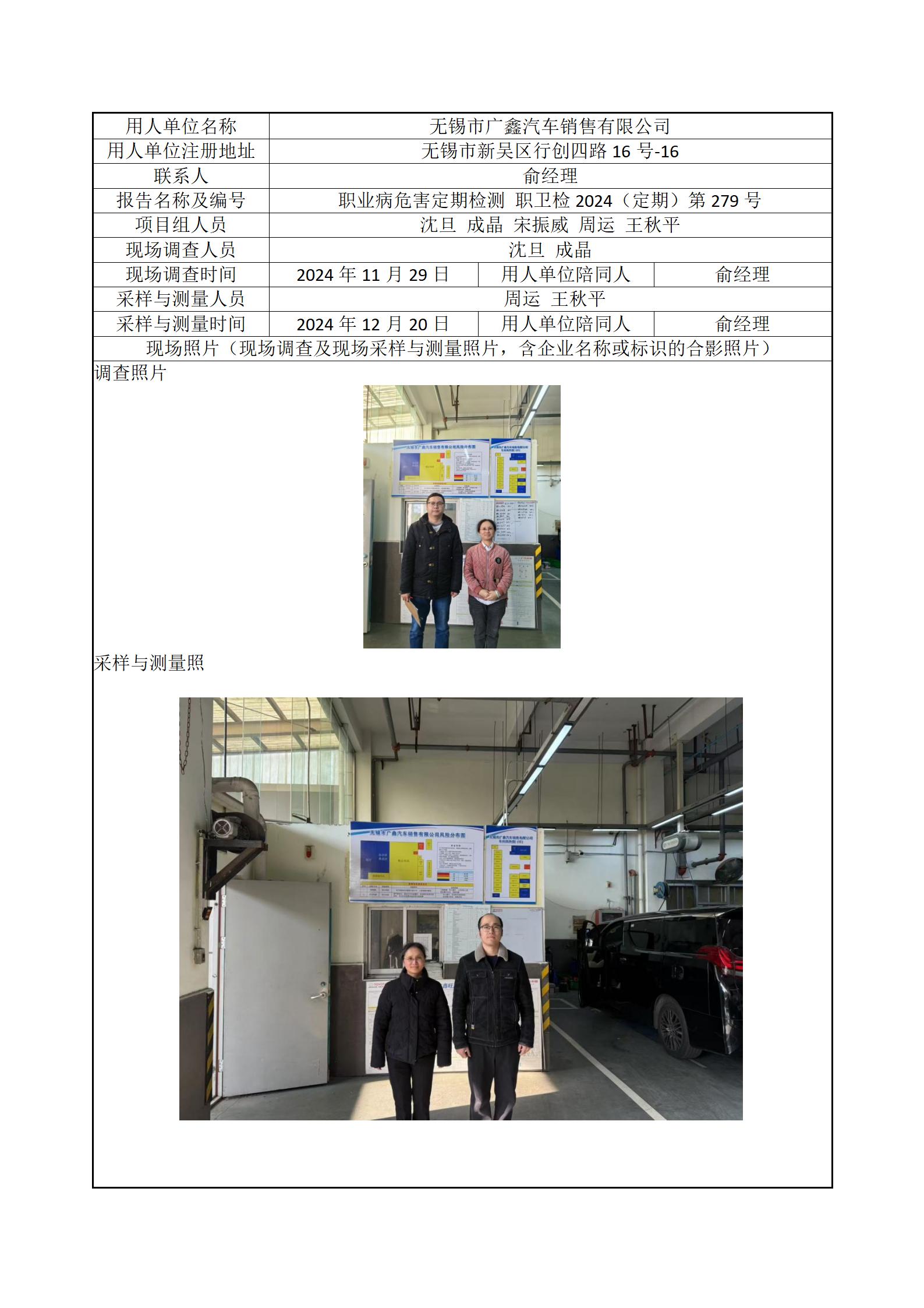 现场采样每日上报(无锡市广鑫汽车销售有限公司)