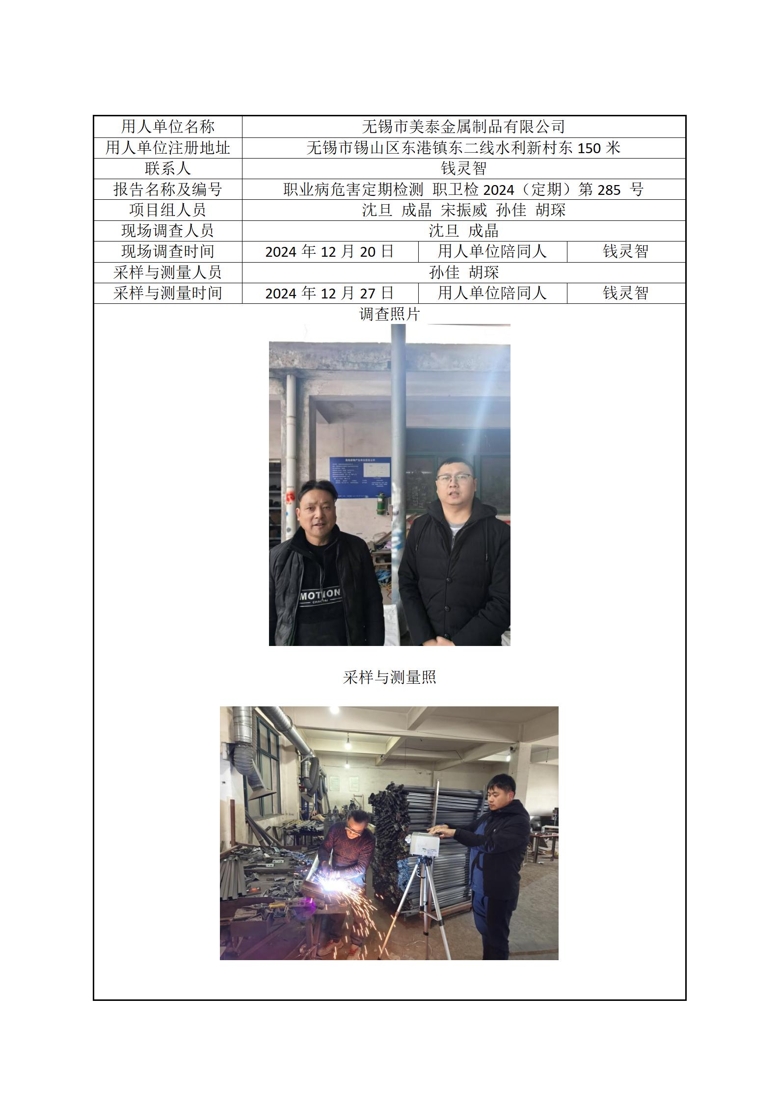 现场采样每日上报(无锡市美泰金属制品有限公司)