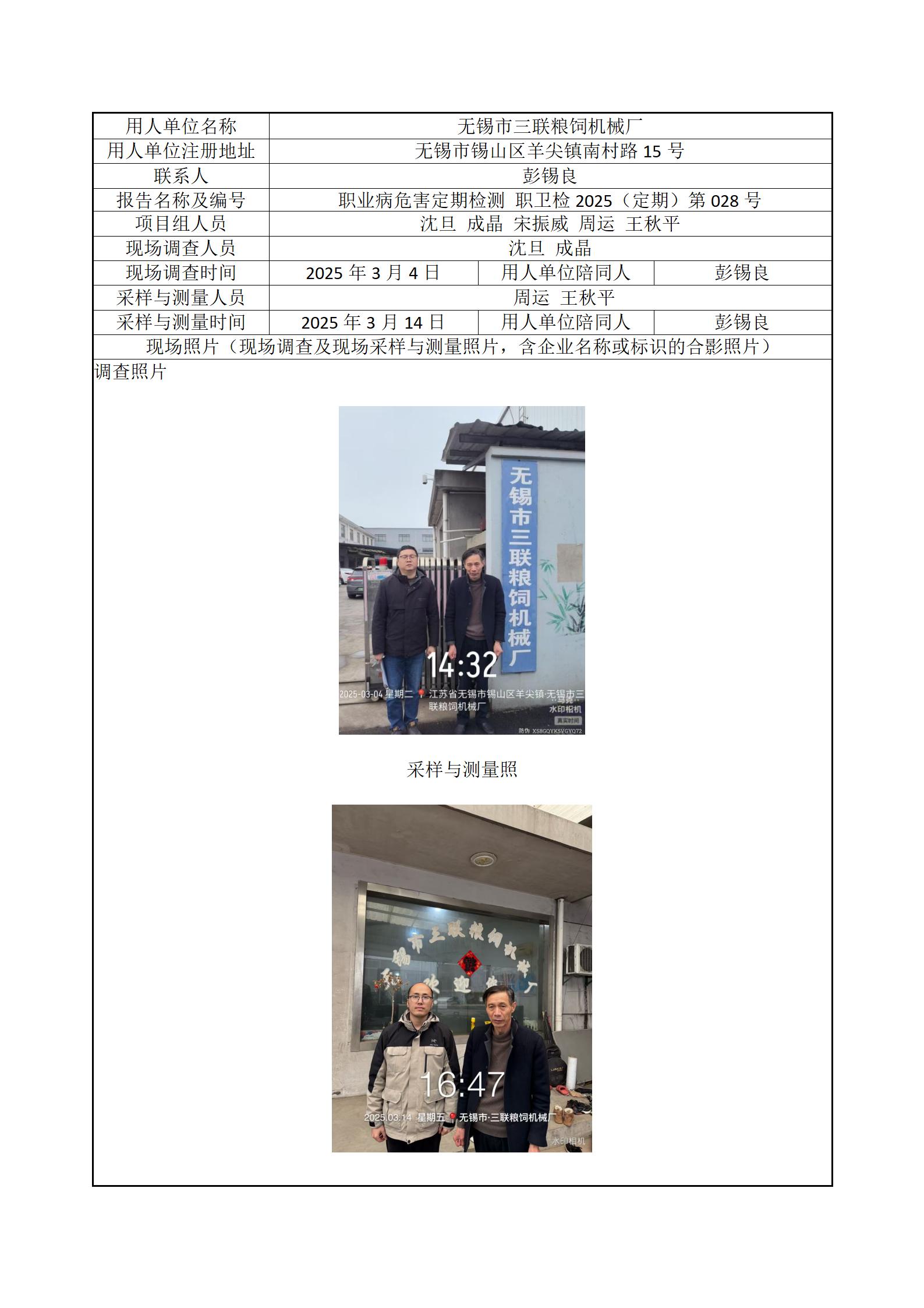 现场采样每日上报(无锡市三联粮饲机械厂)