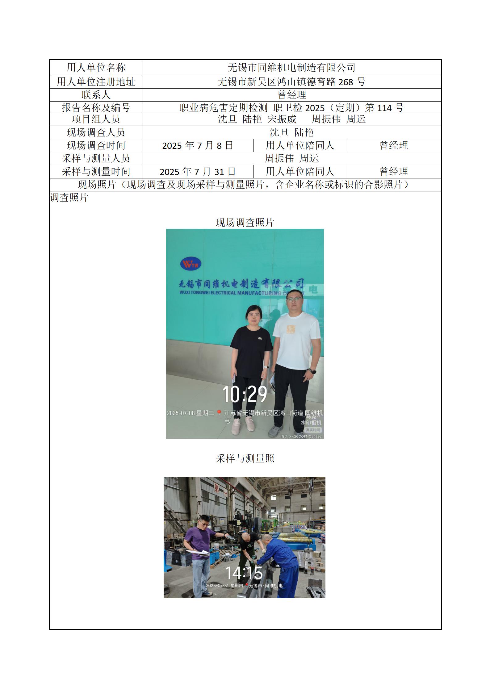 现场采样每日上报(无锡市同维机电制造有限公司)