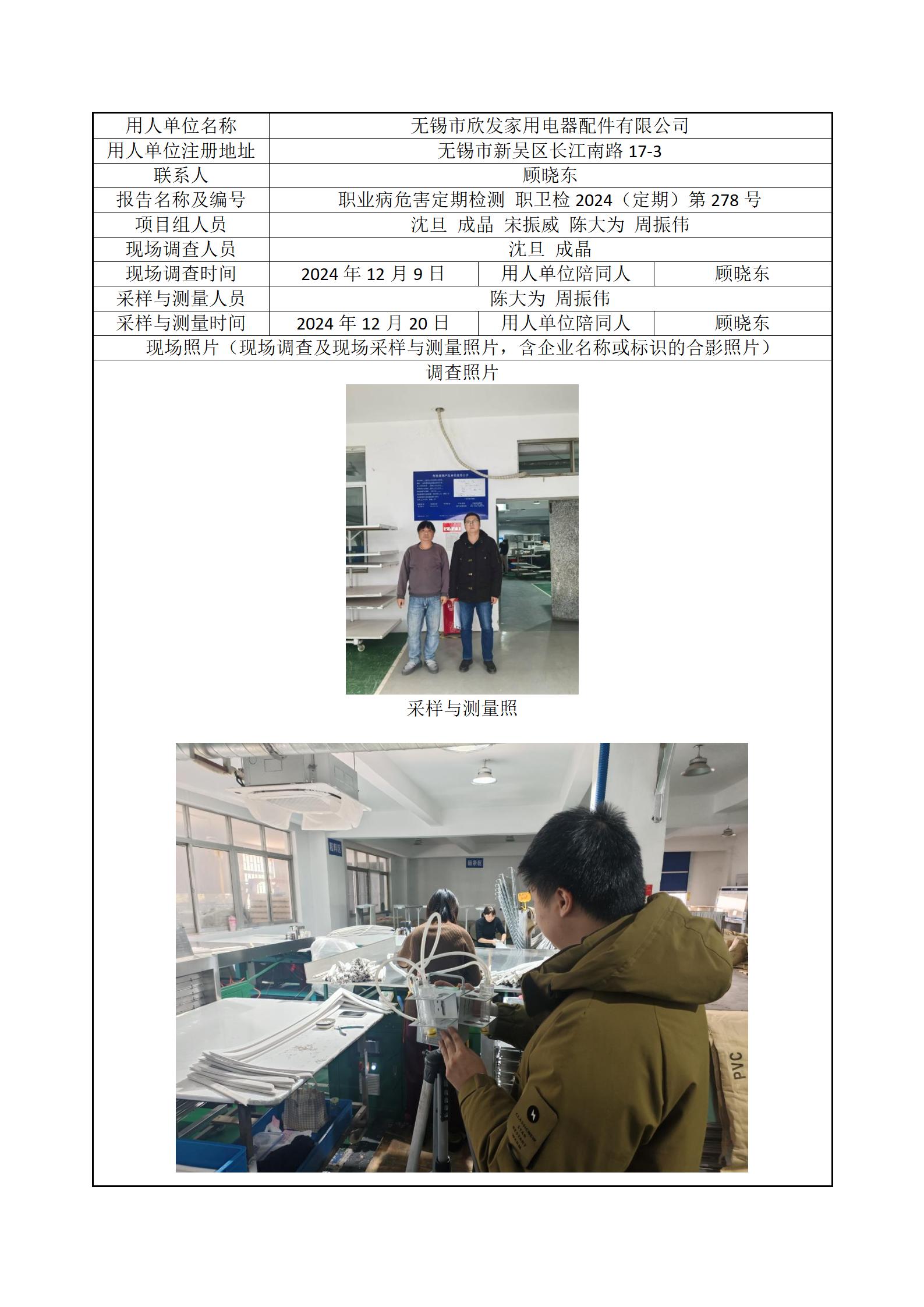 现场采样每日上报(无锡市欣发家用电器配件有限公司)