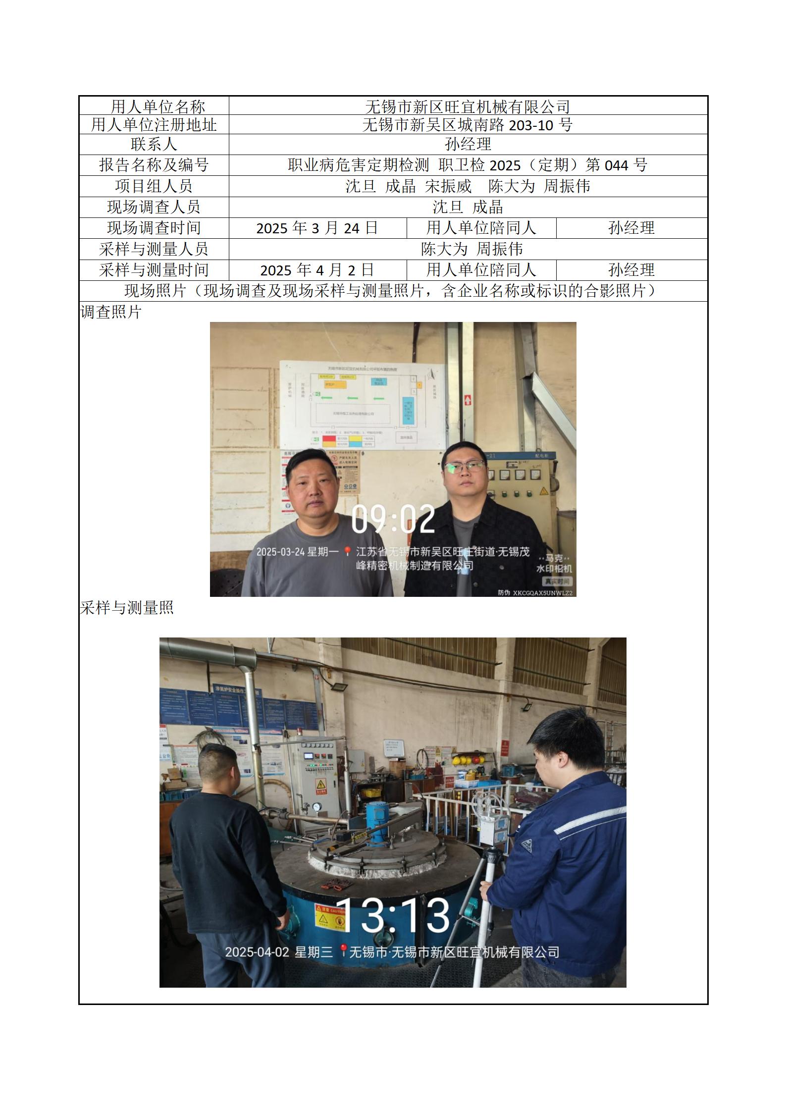 现场采样每日上报(无锡市新区旺宜机械有限公司)