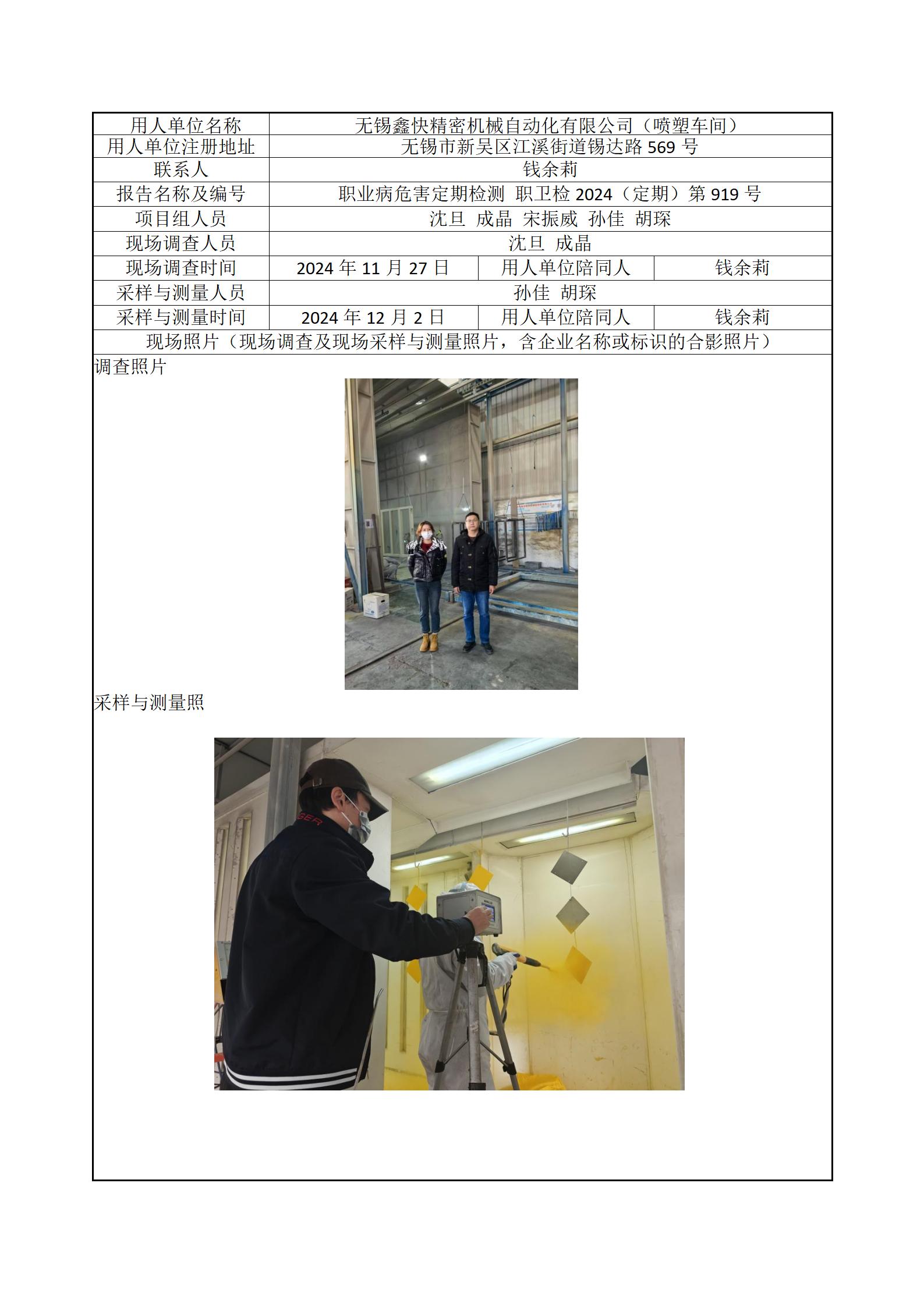 现场采样每日上报(无锡鑫快精密机械自动化有限公司(喷塑车间))