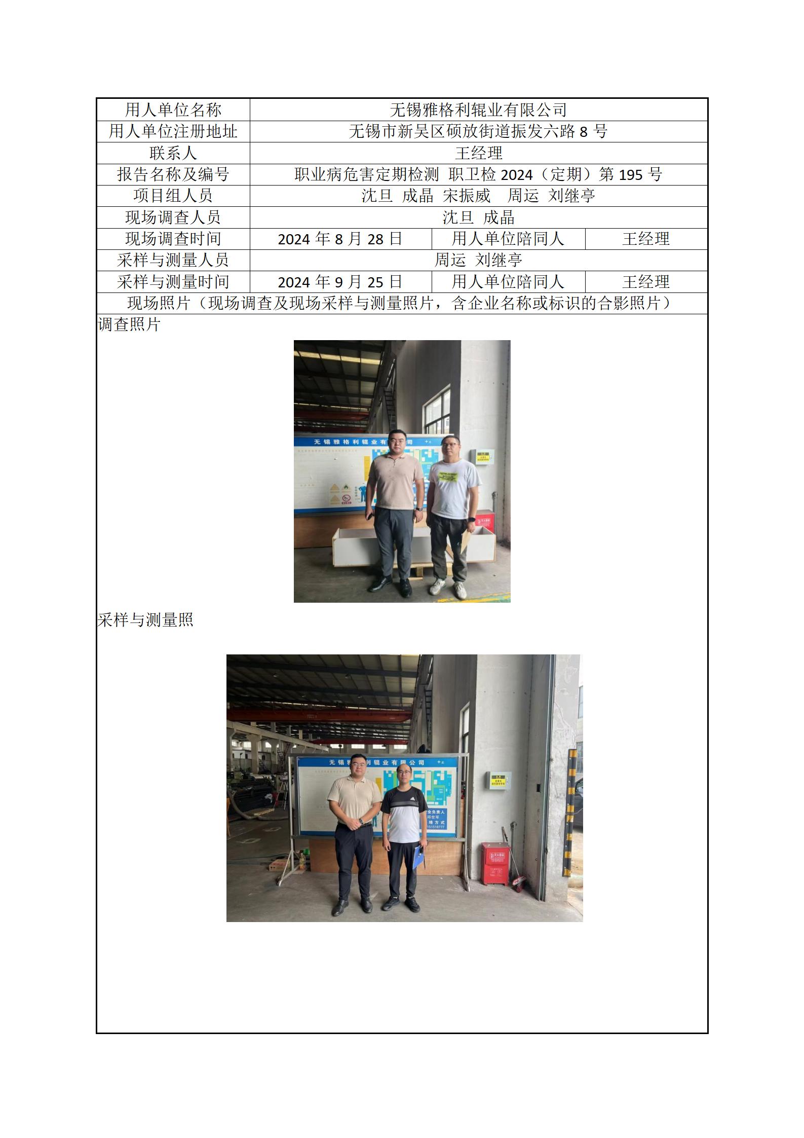 现场采样每日上报(无锡雅格利辊业有限公司)