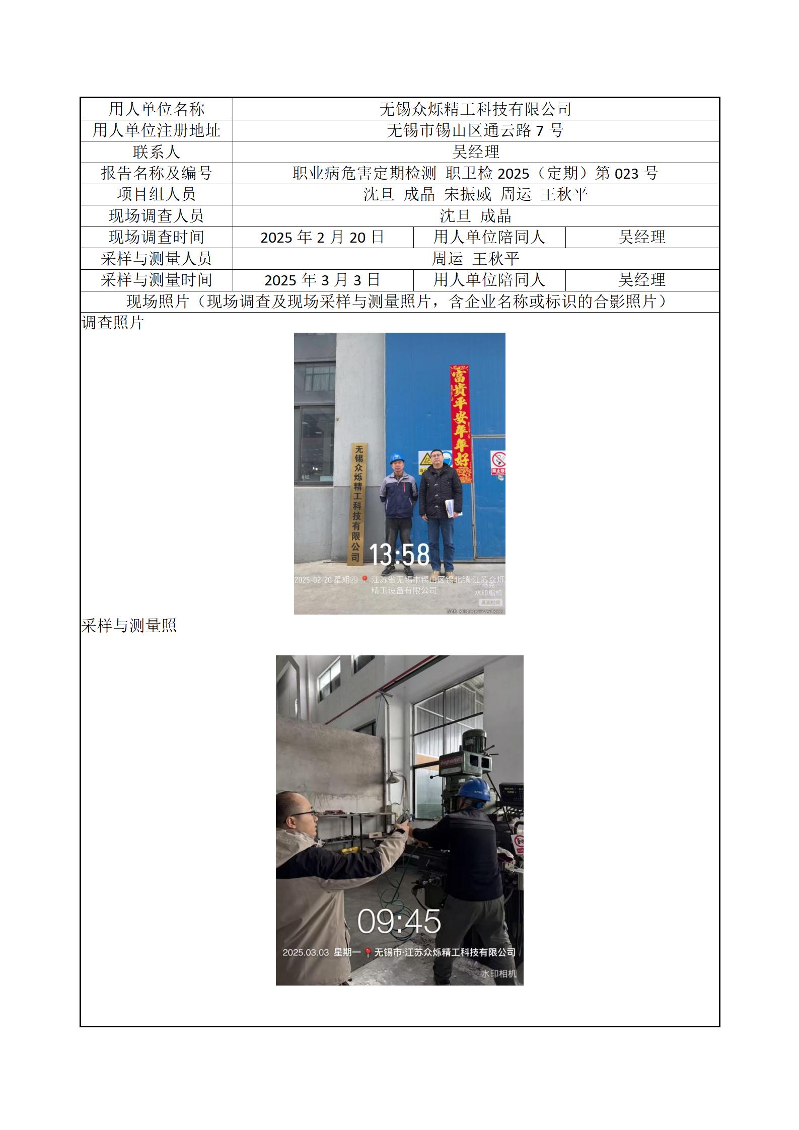 现场采样每日上报(无锡众烁精工科技有限公司)