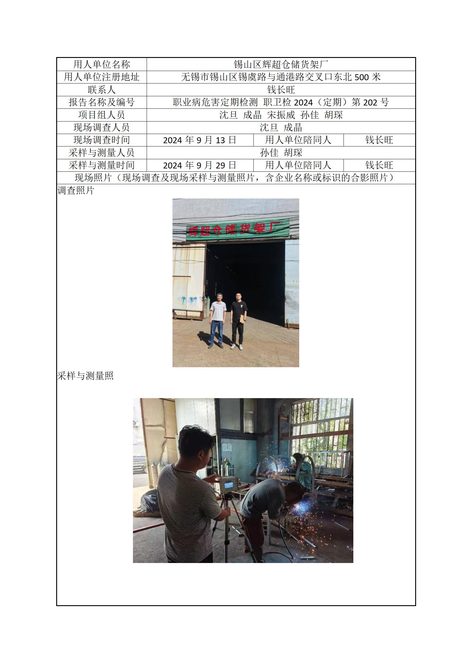现场采样每日上报(锡山区辉超仓储货架厂)