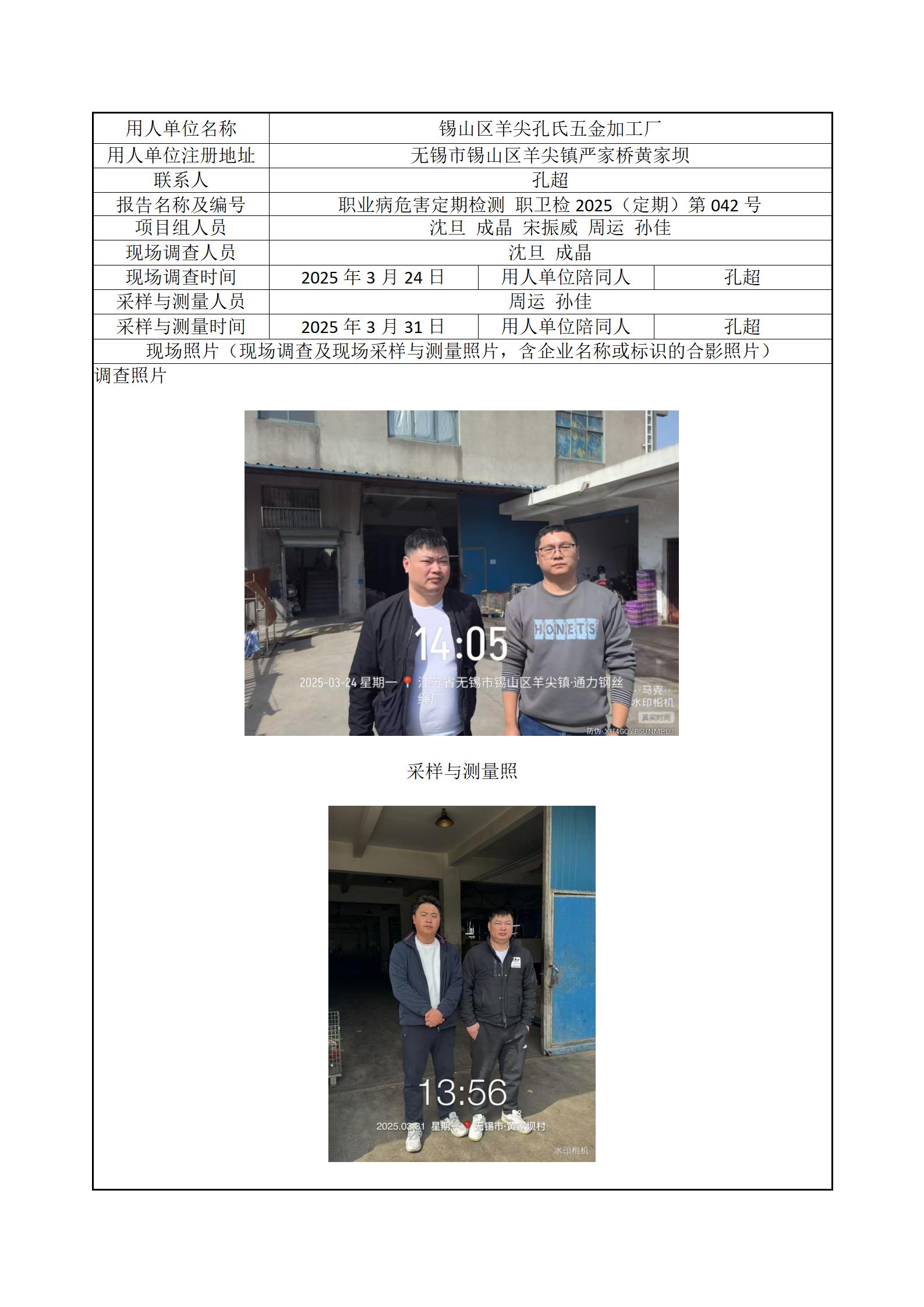 现场采样每日上报(锡山区羊尖孔氏五金加工厂)
