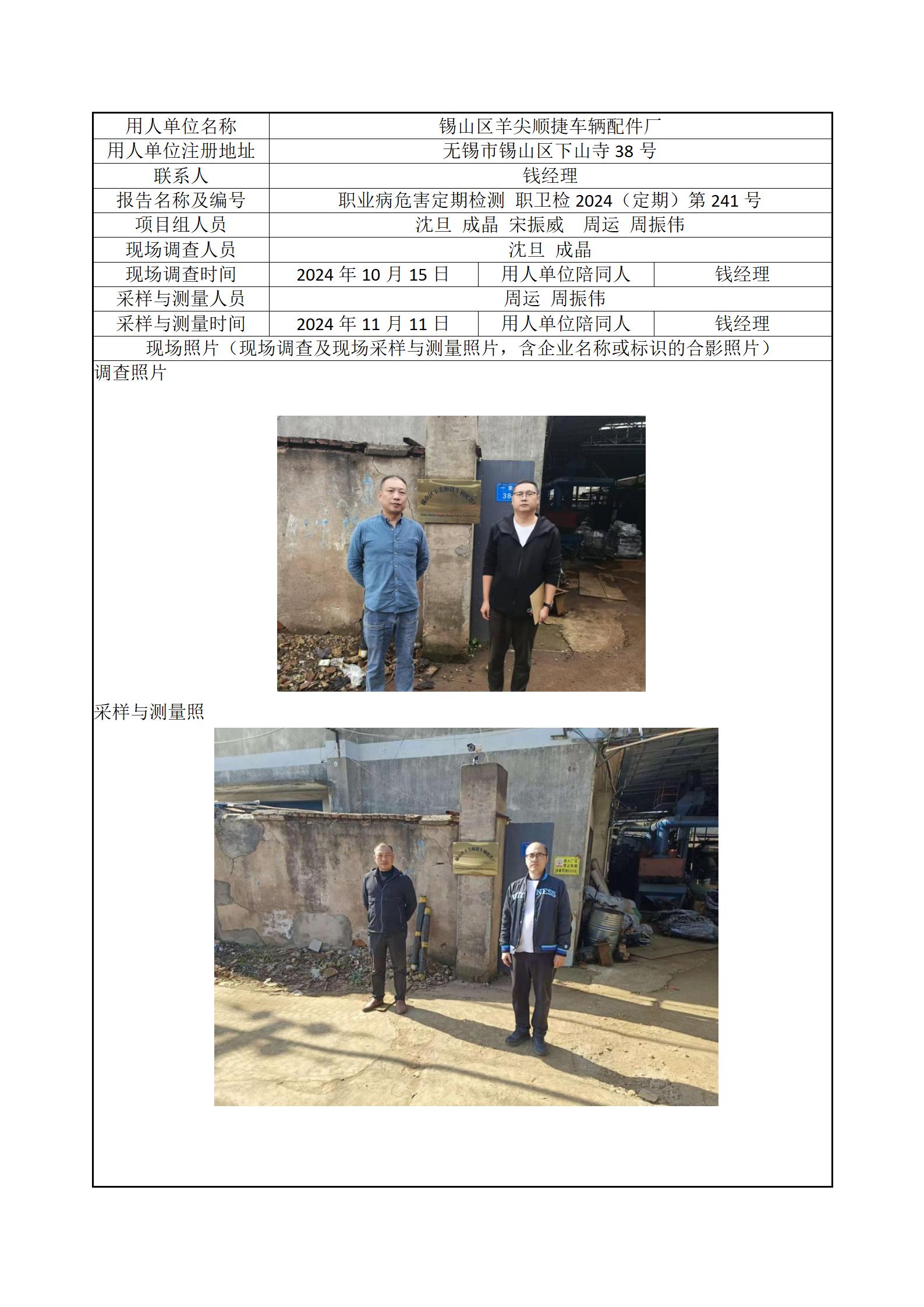 现场采样每日上报(锡山区羊尖顺捷车辆配件厂)