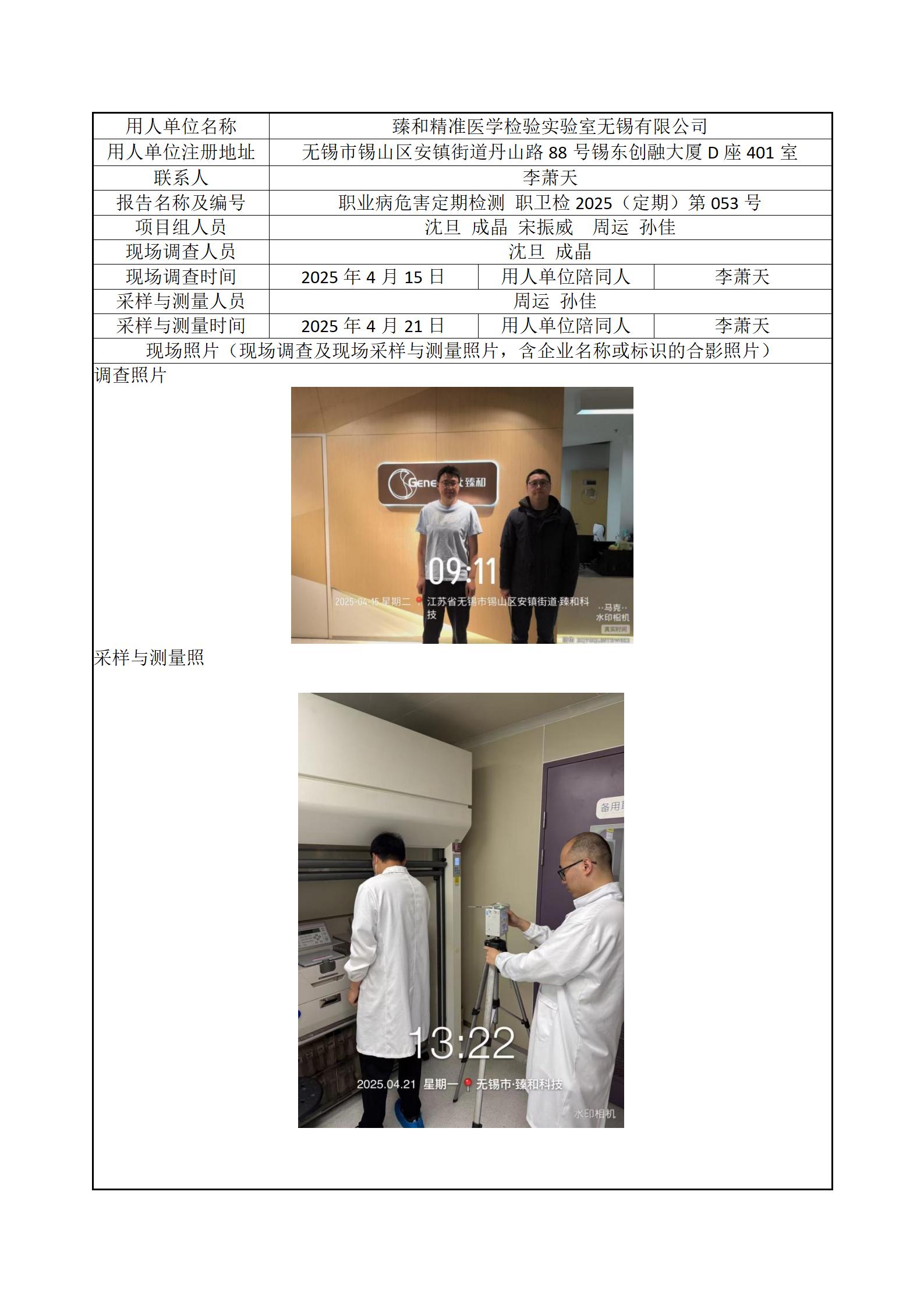 现场采样每日上报(臻和精准医学检验实验室无锡有限公司)