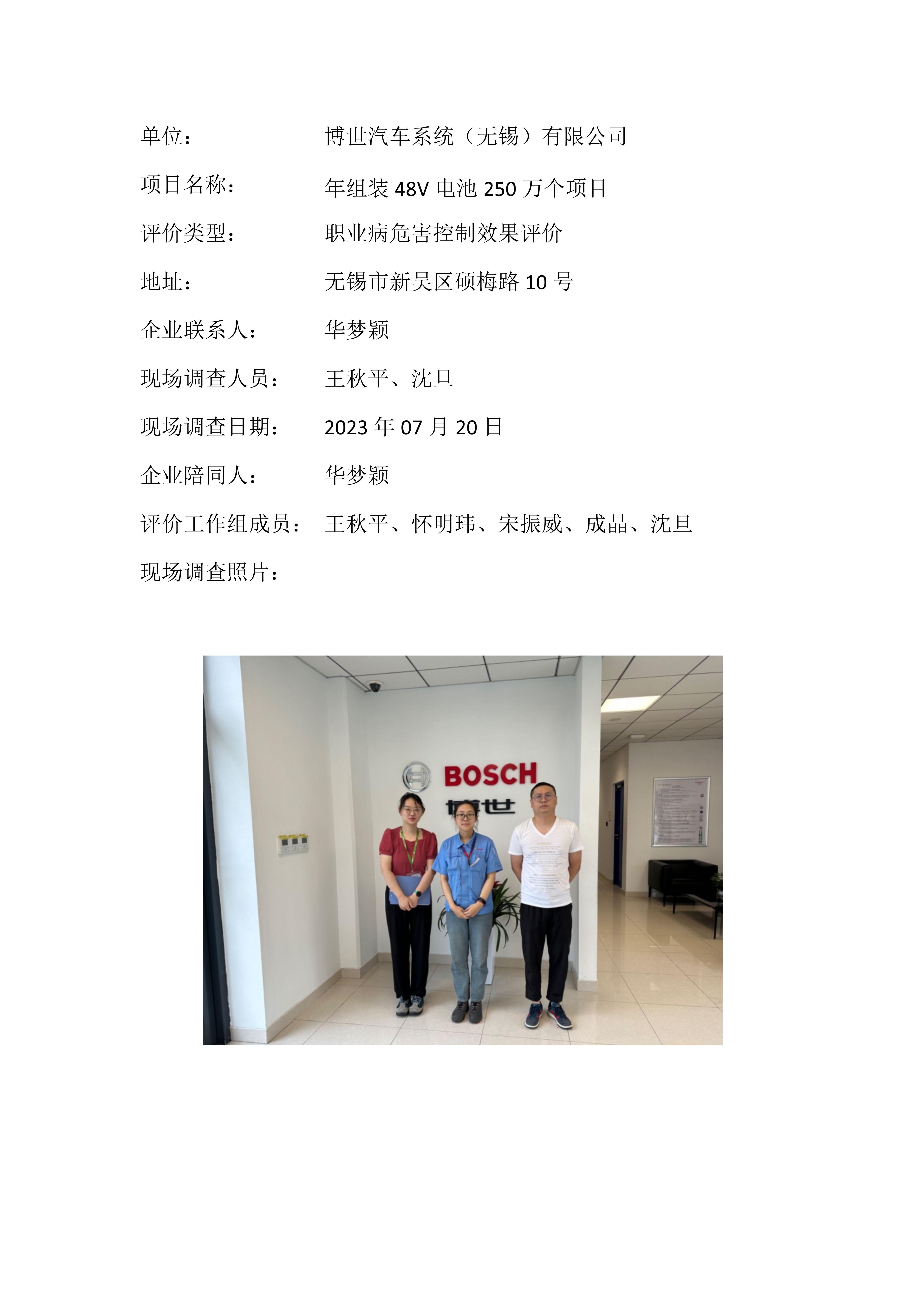 【职业病危害控制效果评价报告】博世汽车系统(无锡)有限公司-48V电池