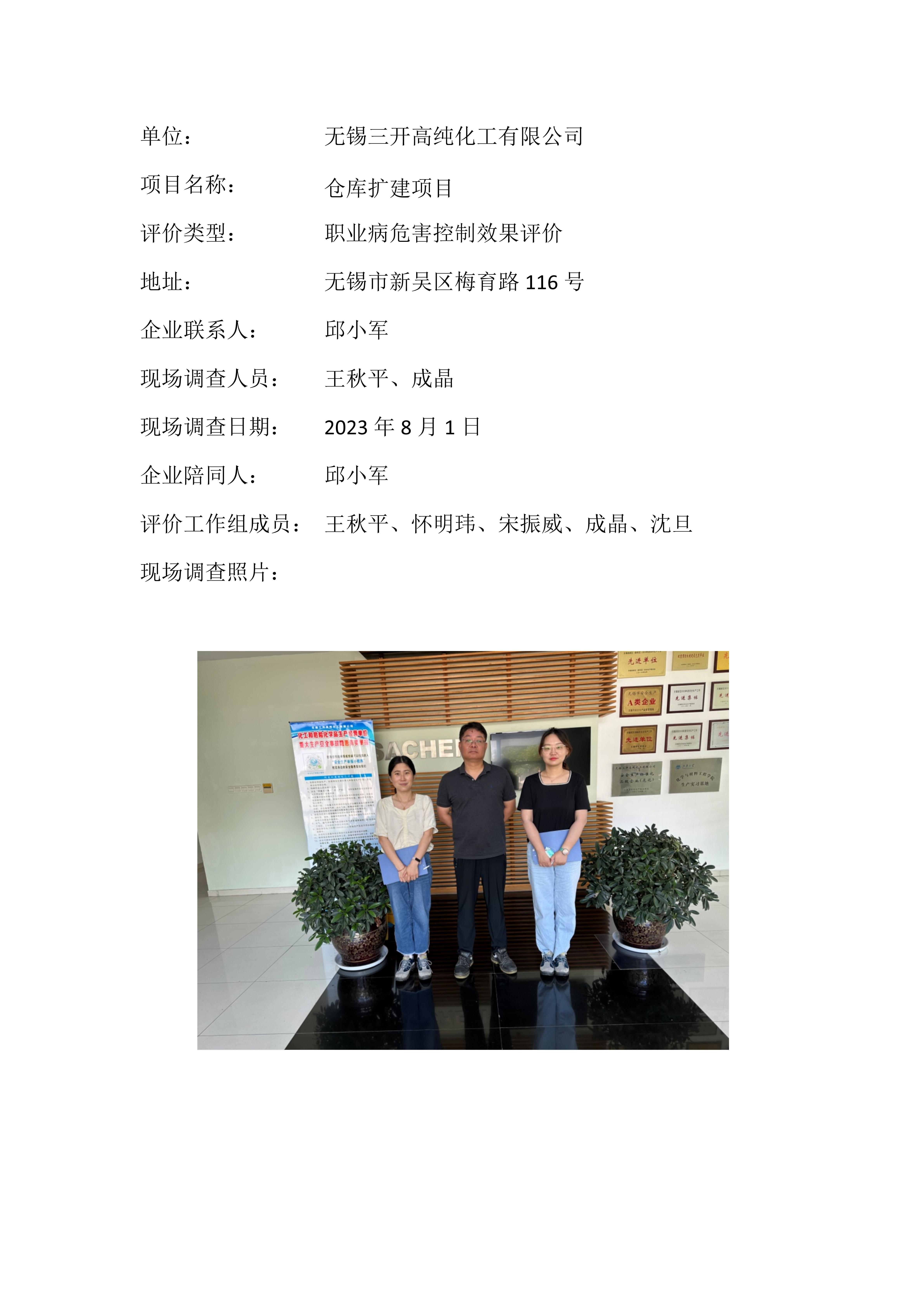 【职业病危害控制效果评价报告】无锡三开高纯化工有限公司