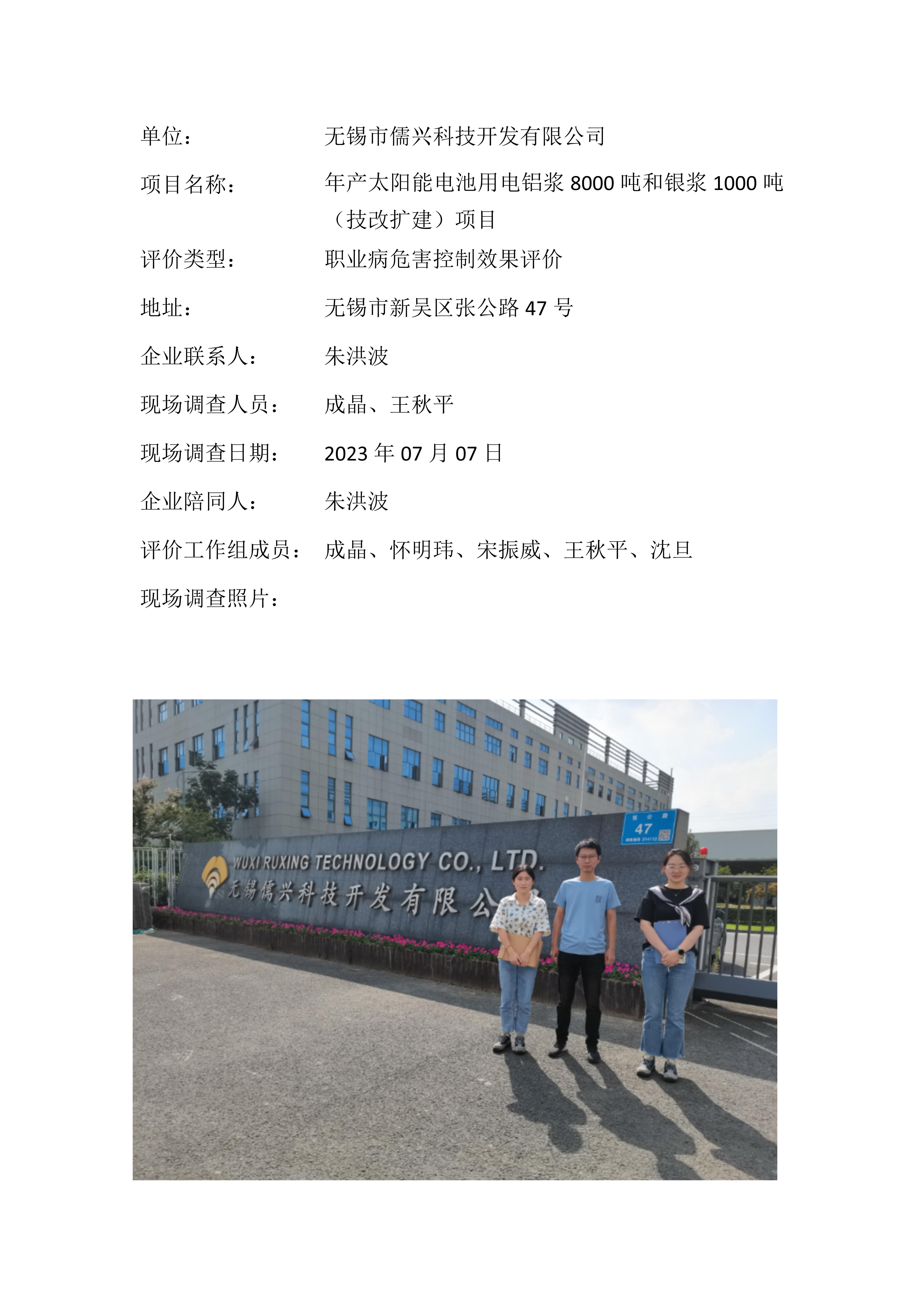 【职业病危害控制效果评价报告】无锡市儒兴科技开发有限公司
