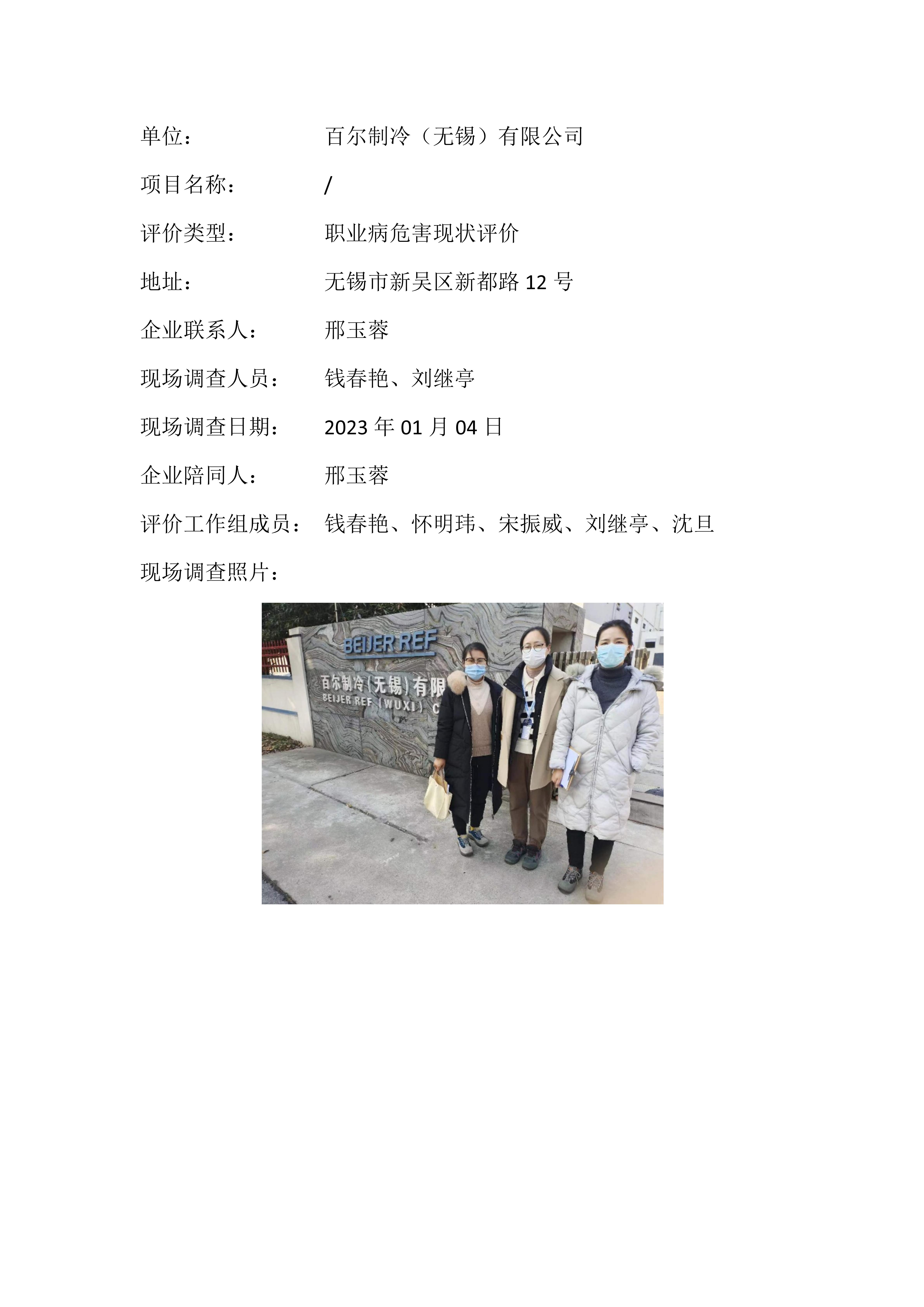 【职业病危害现状评价报告】百尔制冷(无锡)有限公司