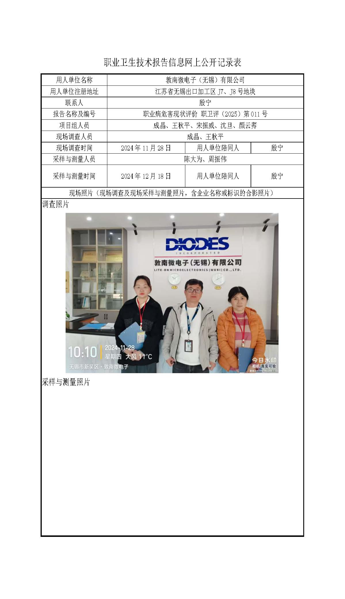 【职业病危害现状评价报告】敦南微电子(无锡)有限公司