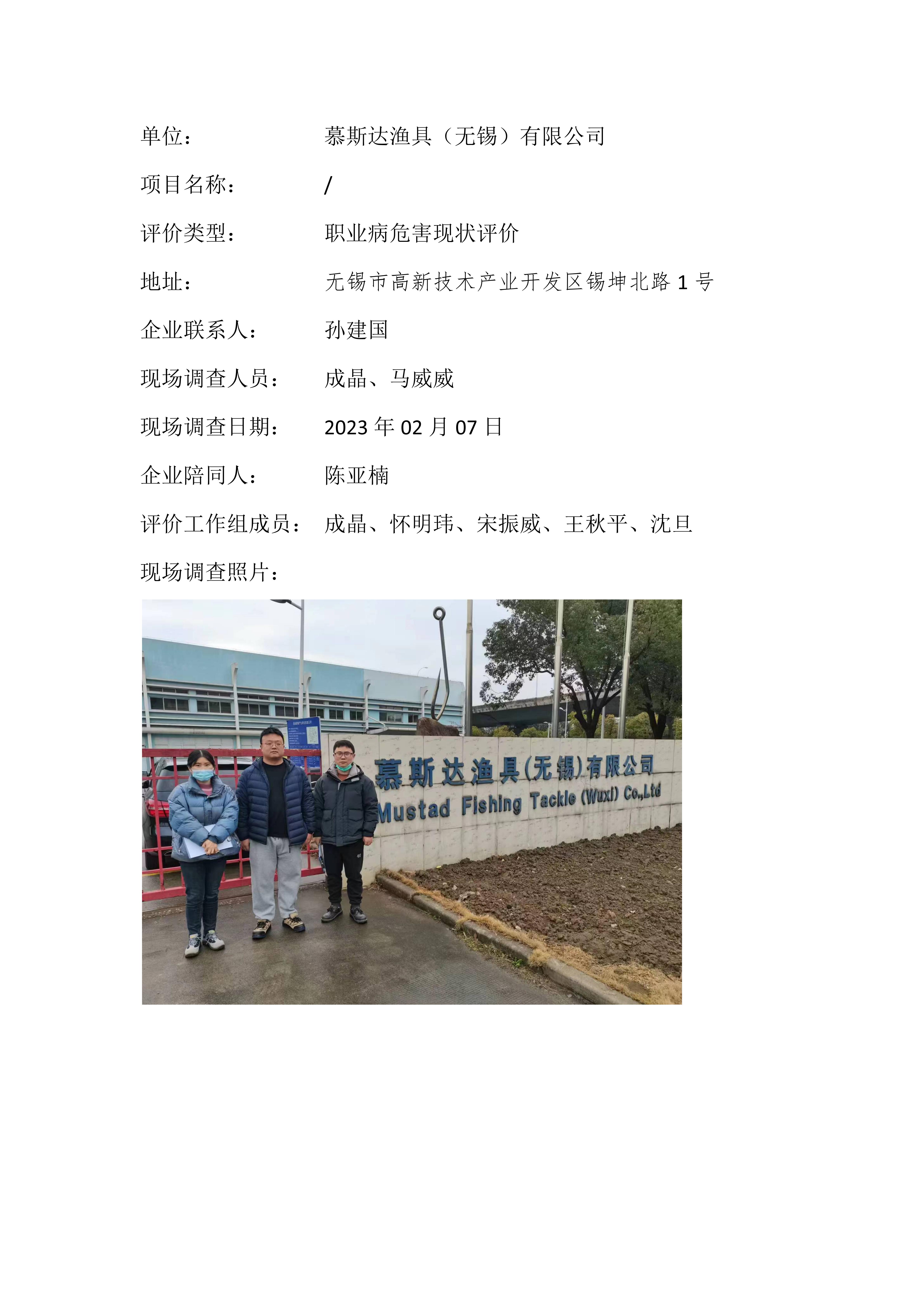 【职业病危害现状评价报告】慕斯达渔具(无锡)有限公司