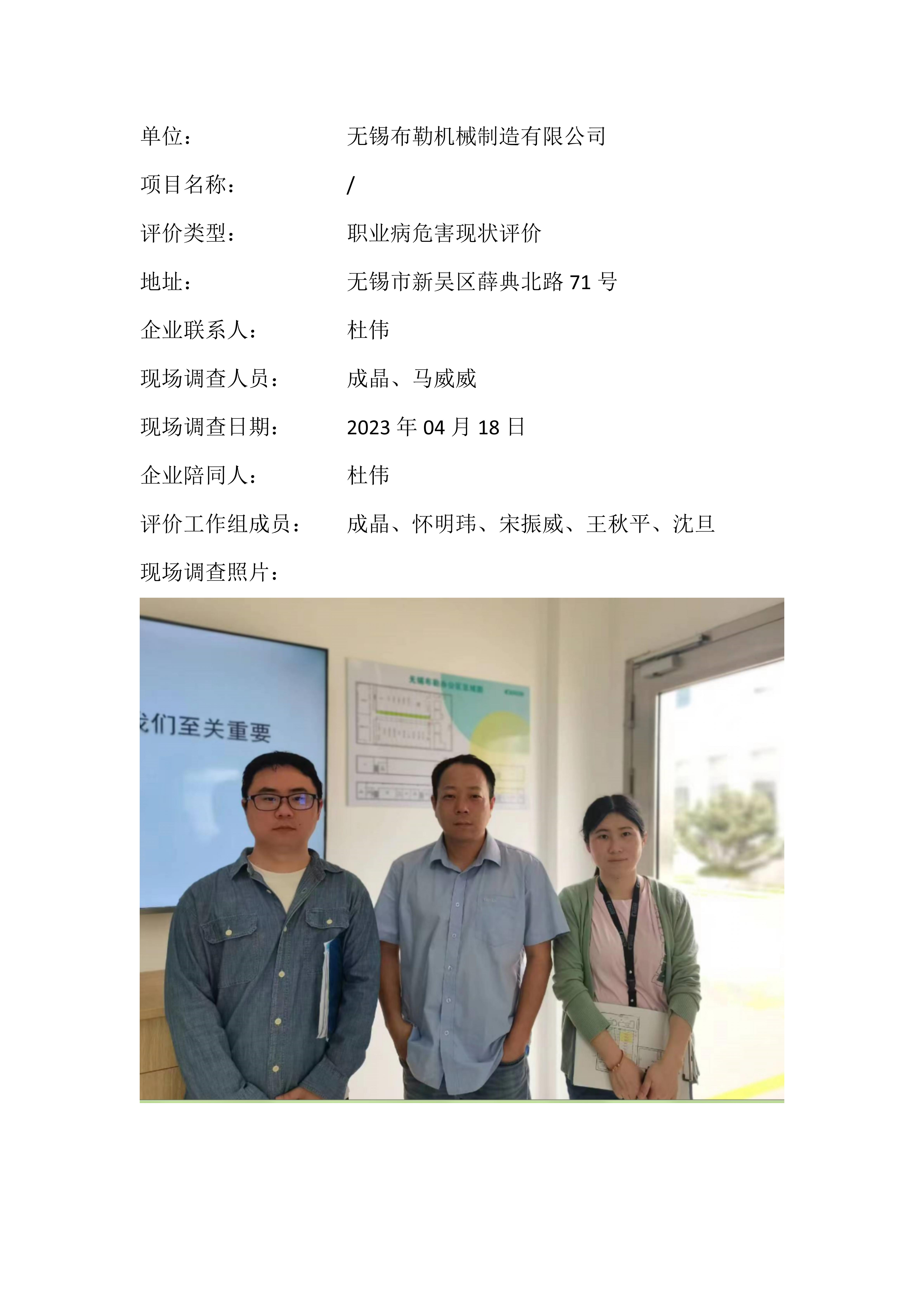 【职业病危害现状评价报告】无锡布勒机械有限公司