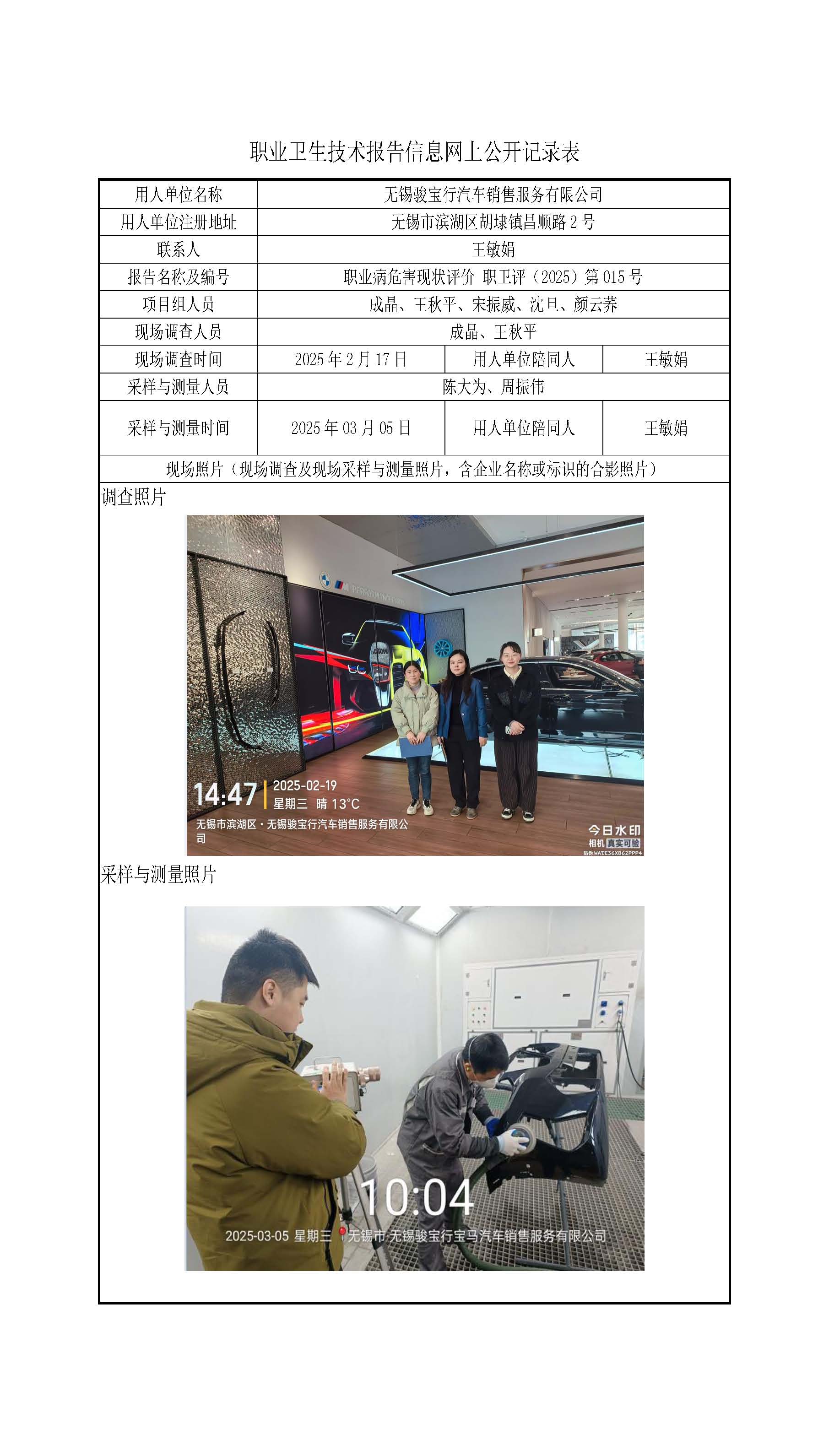 【职业病危害现状评价报告】无锡骏宝行骑车销售服务有限公司