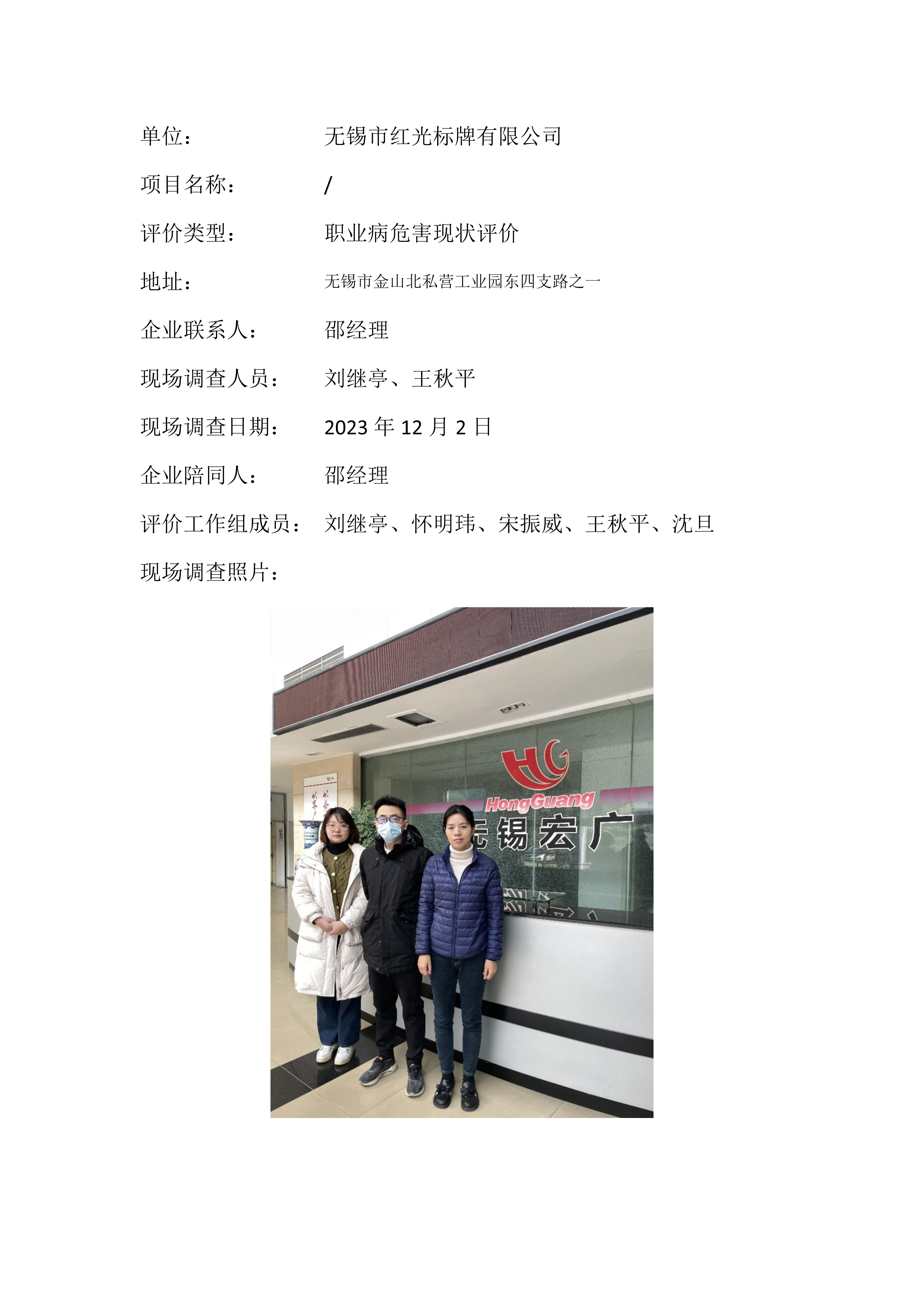 【职业病危害现状评价报告】无锡市红光标牌有限公司