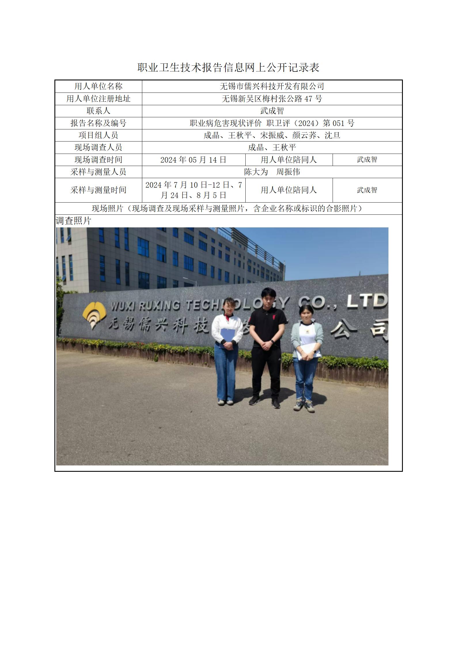 【职业病危害现状评价报告】无锡市儒兴科技开发有限公司
