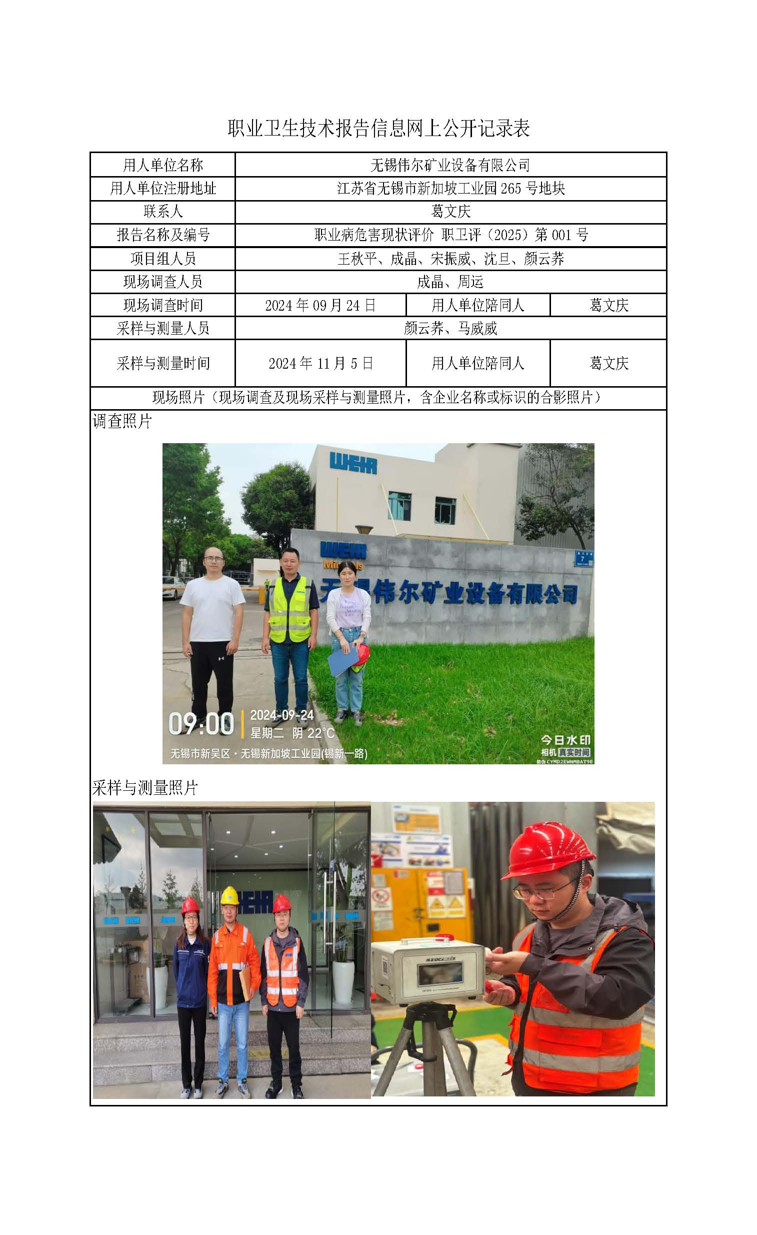 【职业病危害现状评价报告】无锡伟尔矿业设备有限公司