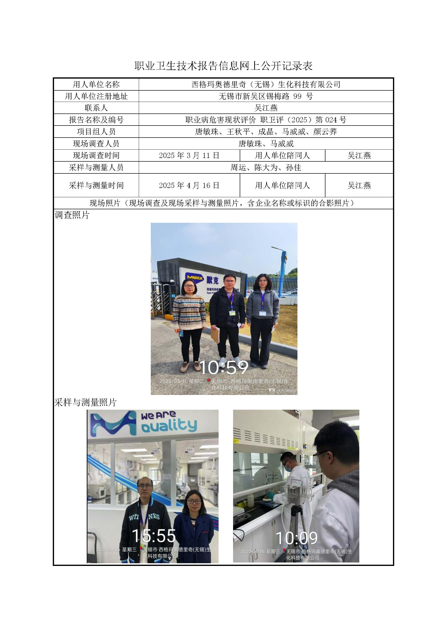 【职业病危害现状评价报告】西格玛奥德里奇(无锡)生化科技有限公司