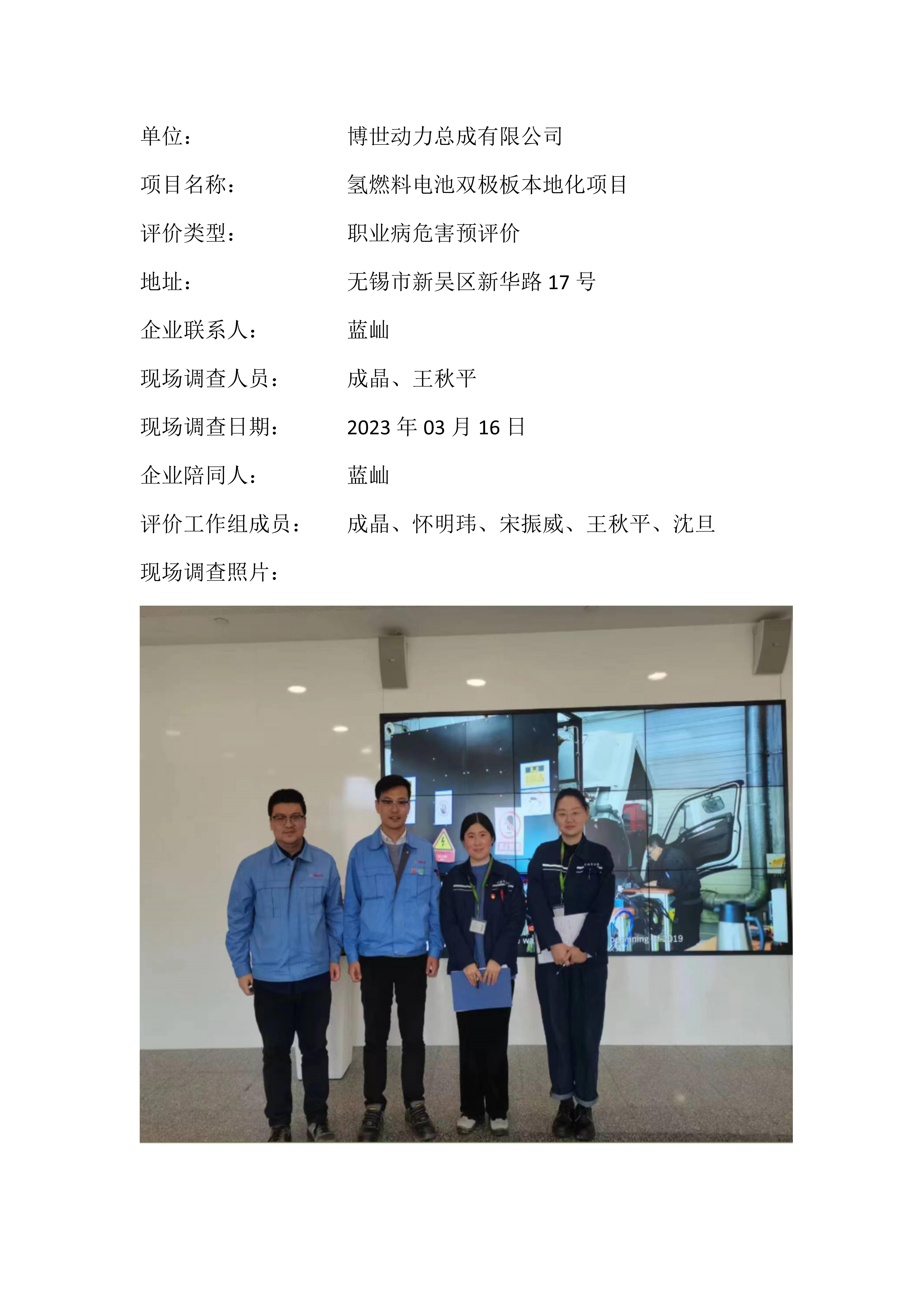 【职业病危害预评价报告】博世动力总成有限公司