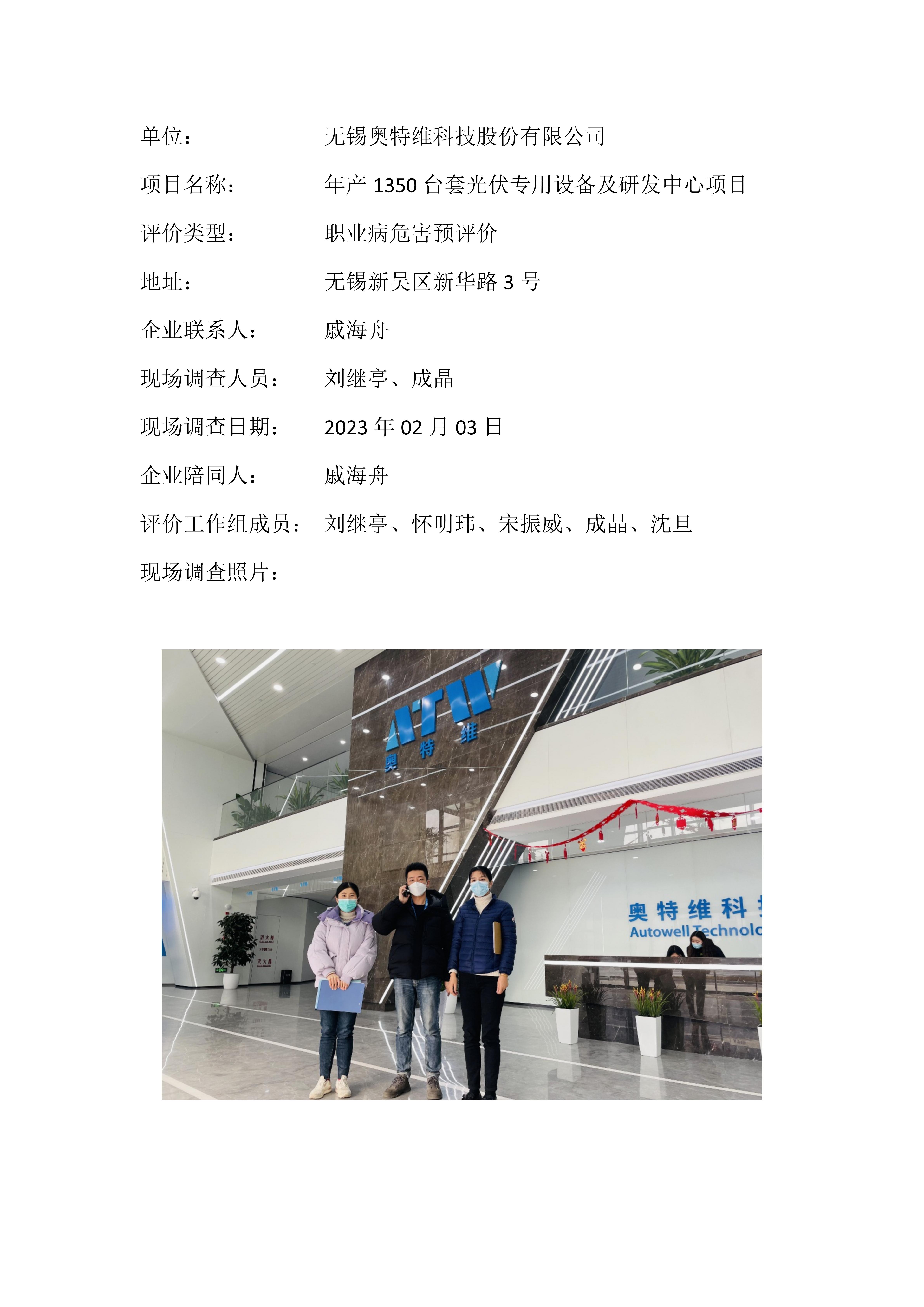 【职业病危害预评价报告】无锡奥特维科技股份有限公司