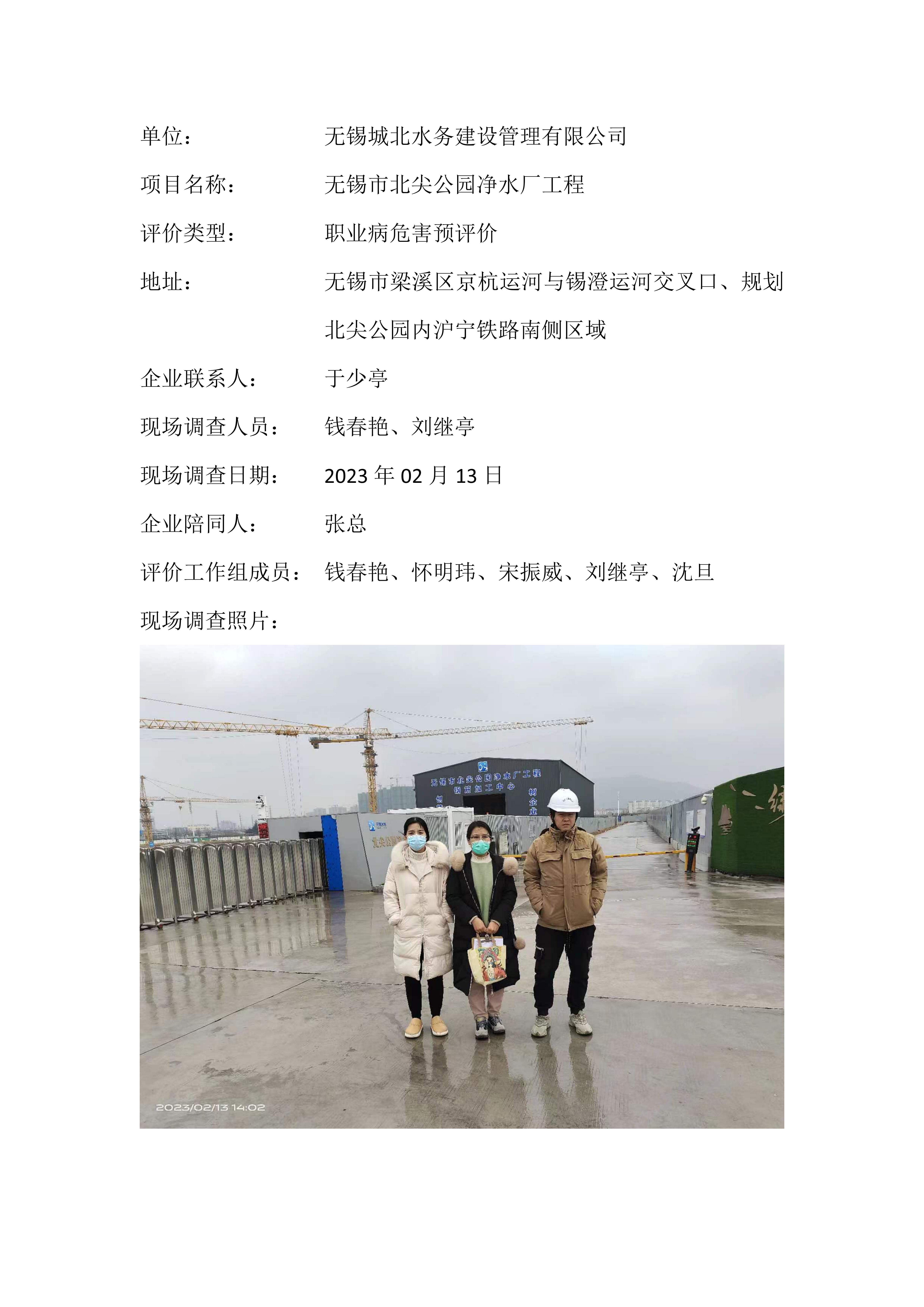 【职业病危害预评价报告】无锡城北水务建设管理有限公司