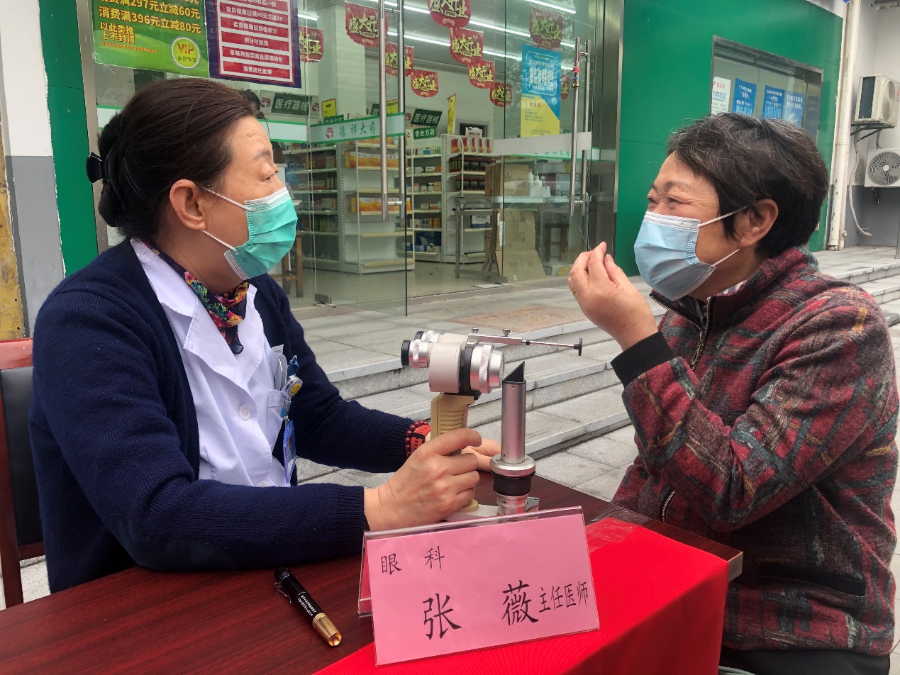 眼科主任张薇为患者进行现场答疑,提供缜密的治疗方案;为常见眼病、泪道堵塞、眼底病、白内障等患者进行现场检查,不仅为患者减轻心理负担,更为患者树立康复信心。
