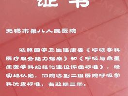无锡市市级临床重点专科建设单位——儿呼吸科
