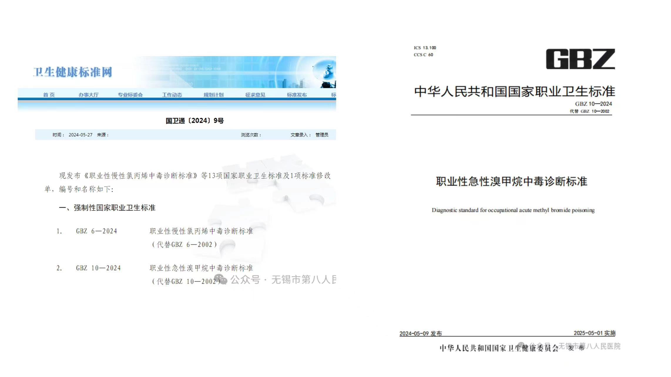 2024年5月9日,国家卫生健康委员会发布了国家职业卫生标准《职业性急性溴甲烷中毒诊断标准》(GBZ 10—2024)。该标准是由av片 牵头,江苏省疾病预防控制中心、山东省职业卫生与职业病防治研究院、广东省职业病防治院等多个单位联合参与起草修订。
