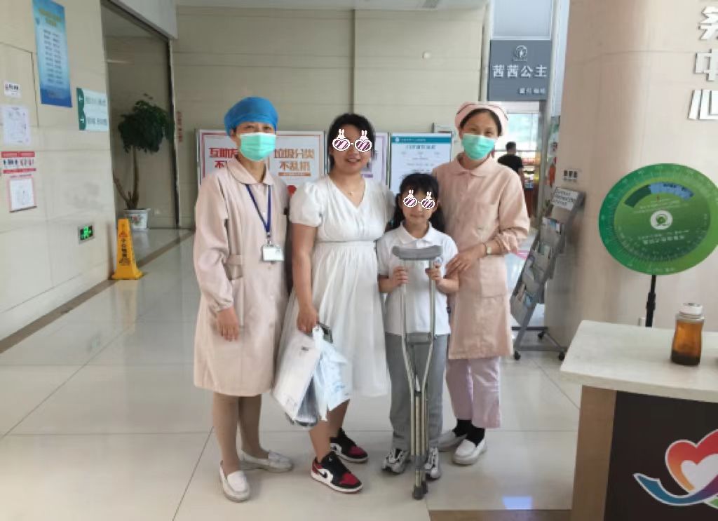 骨科进行诊治,因为打了石膏不方便行走,妈妈特意为小朋友买了儿童拐杖。治疗期间,小朋友获得了八院医护人员的悉心照顾和服务,在医护人员的专业指导和小朋友的努力锻炼下,她很快恢复了健康。所以,为了表达自己的感激之情,小朋友和妈妈希望让这对儿童拐杖在医院发挥更多的用处,为其他有需要的小朋友带来方便。
