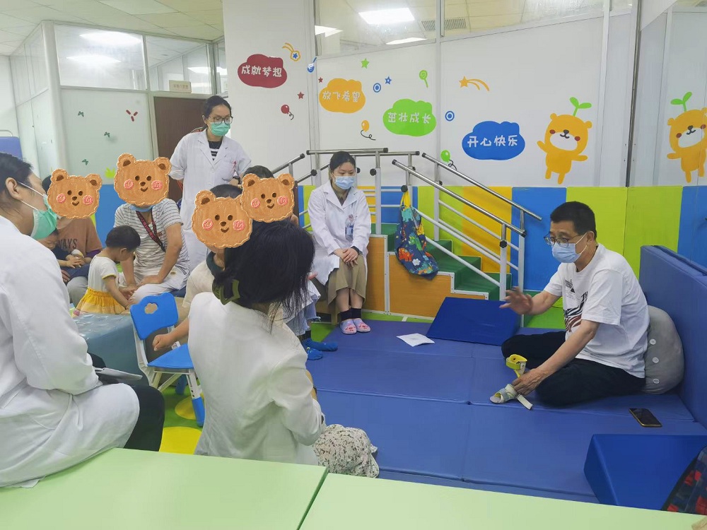 在儿童康复智力治疗室现场,杨主任结合自身丰富的临床经验,与医务人员进行详细的沟通,同时根据现有的治疗器材和场地提出更多实用性和便于操作性的意见和建议,让医生和治疗师们都受益匪浅。