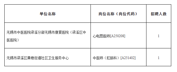 2、根据《2025年无锡市梁溪区卫生健康委下属医疗卫生事业单位公开招聘工作人员公告(普通类)》,下列岗位因报名成功人数未达到开考比例,经市公开招聘综合管理部门核准,予以减少招聘人数并调整开考比例: